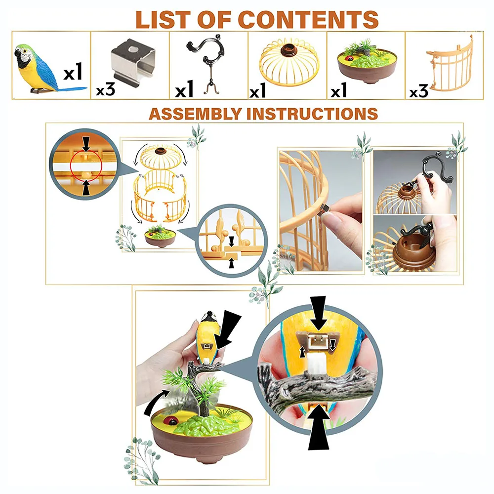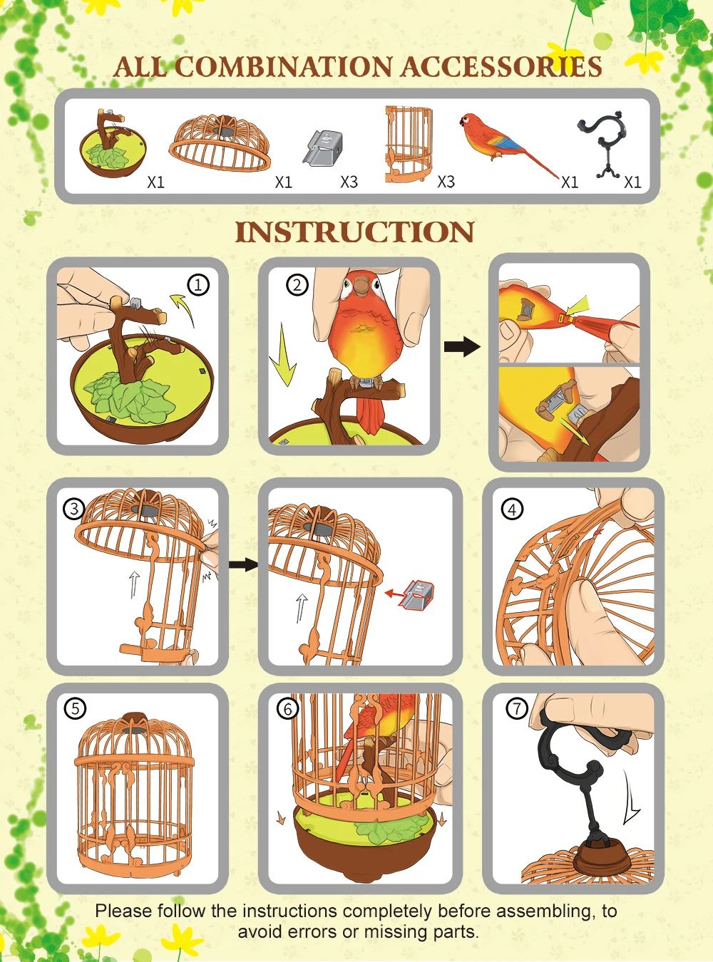 Простая и простая сборка требуется Кнопка ВКЛ/ВЫКЛ расположена под игрушкой рядом с отсеком для батареи Примечание: Не забудьте использовать небольшие металлические зажимы, чтобы держать клетку вместе. Требуется 3x1,5 V 'AA' размер батареи (не входит в комплект)