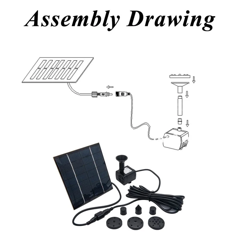 1. Поместите насос полностью в воду с его насадкой над водой;Будьте уверены, что насос прочно закрепляется на нижней части фонтана, чтобы избежать вибрации