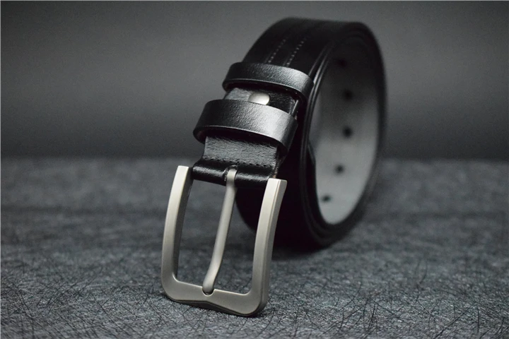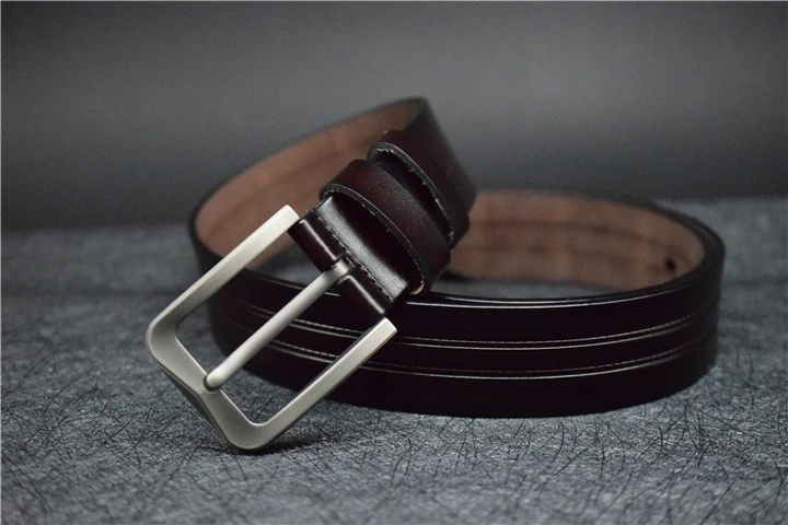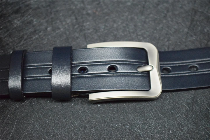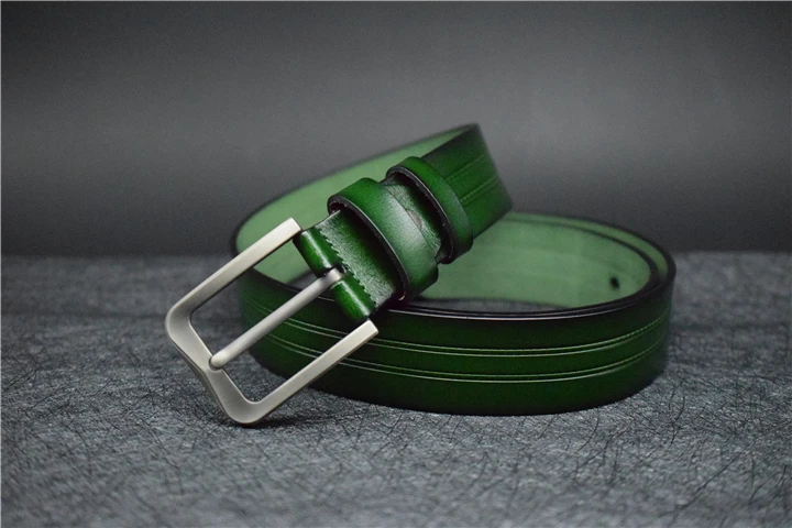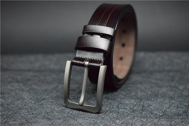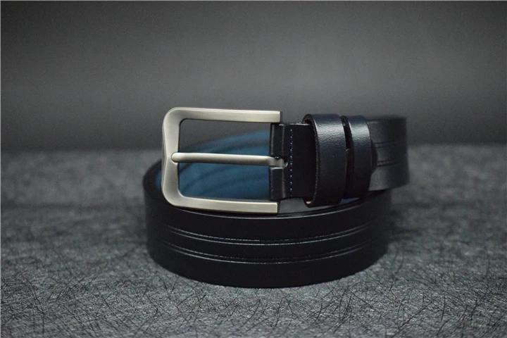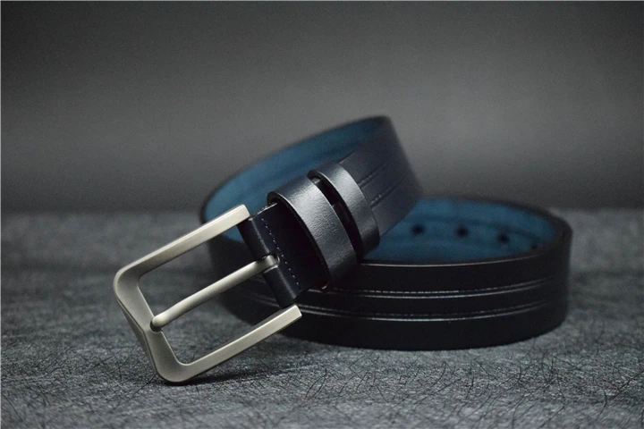 Мужской ремень из коровьей кожи, синий/зеленый/кофейный/черный кожаный ремень для мужчин, модный брючный ремень из сплава с пряжкой со штырьком для джинсов