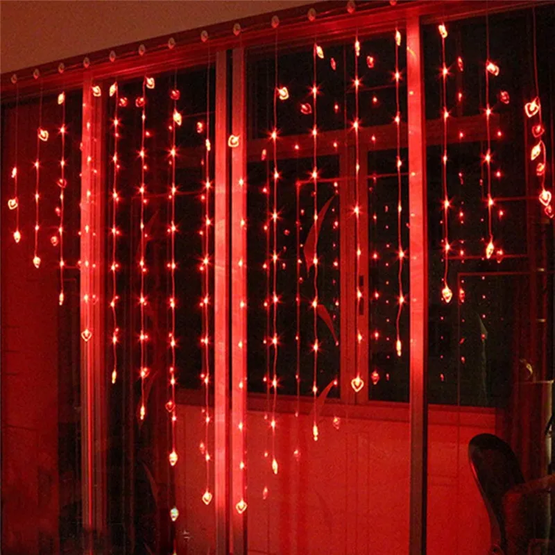 Сердце Форма d гирлянды светодиодные освещение принцессы Форма Шторы праздничные рождественские огни Романтический номер свадебное украшение 2x1,5 m 220V