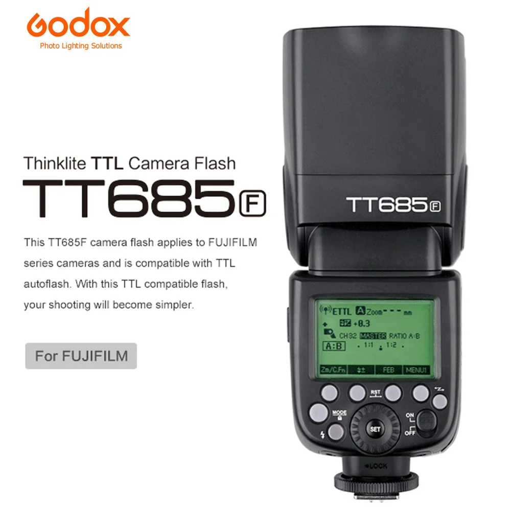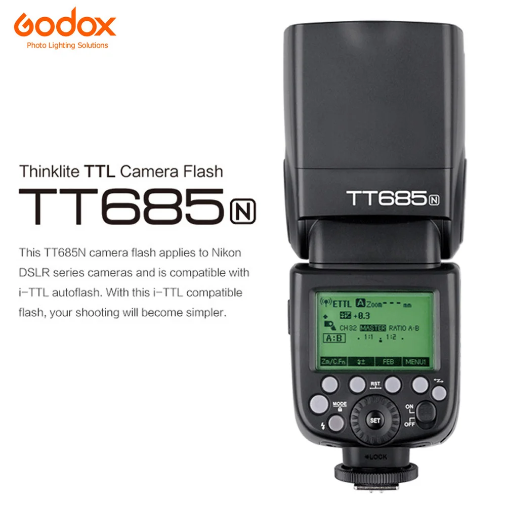 Вспышка Godox Thinklite TT685 подходит для камеры Conon Nikon Sony Fuji Камер Olympus и совместим с TTL автовспышкой. Поддерживает функцию мульти/стробоскопической вспышки, а также функцию автоматического и ручного масштабирования с покрытием вспышки от 24 до 105 мм. С этой вспышкой, совместимой с TTL, ваша съемка станет проще. Вы можете легко добиться правильного экспозиции вспышки даже в сложной среде, меняющей освещение.