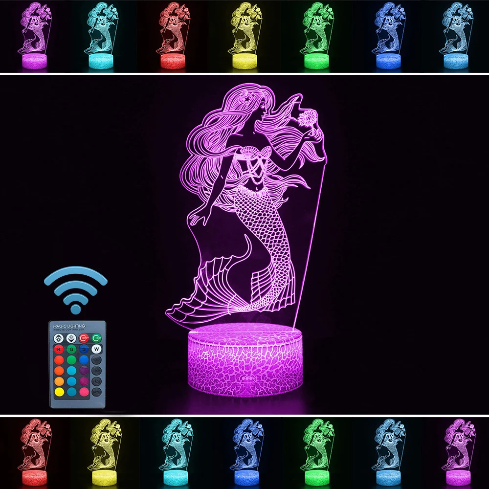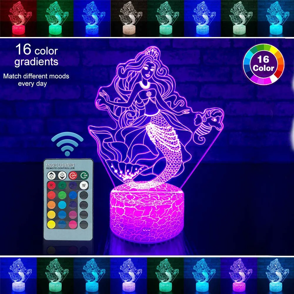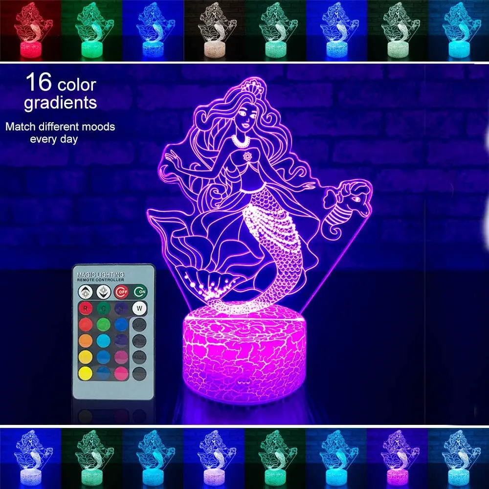 3D светодиодный ночник с дистанционным управлением и сенсорным управлением, модный светильник принцессы русалки, 16 цветов, светодиодная настольная лампа для детей, рождественский подарок, украшение для дома