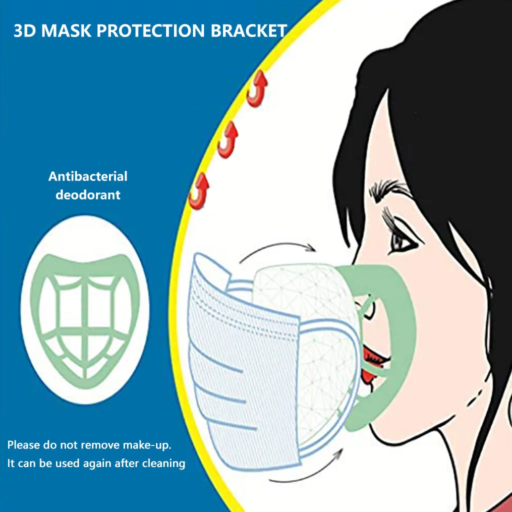 Характеристика: Защита губной помады от макияжа, антипригарная губная помада, увеличение дышащего пространства и помощь гладкому дыханию Вы можете повторно использовать держатель маски, чтобы увеличить количество раз, когда вы используете маску, и решить проблему недостаточного количества масок Носите зеркало, чтобы предотвратить запотевание и сохранить внутреннюю часть маски гигиенической Уникальный дизайн: держатель для 3D маски предназначен для того, чтобы соответствовать лицу мостика носа. Дышите более гладко, дышащие и душные Совет: Этот продукт продает только держатели для масок, а не маски или упаковки