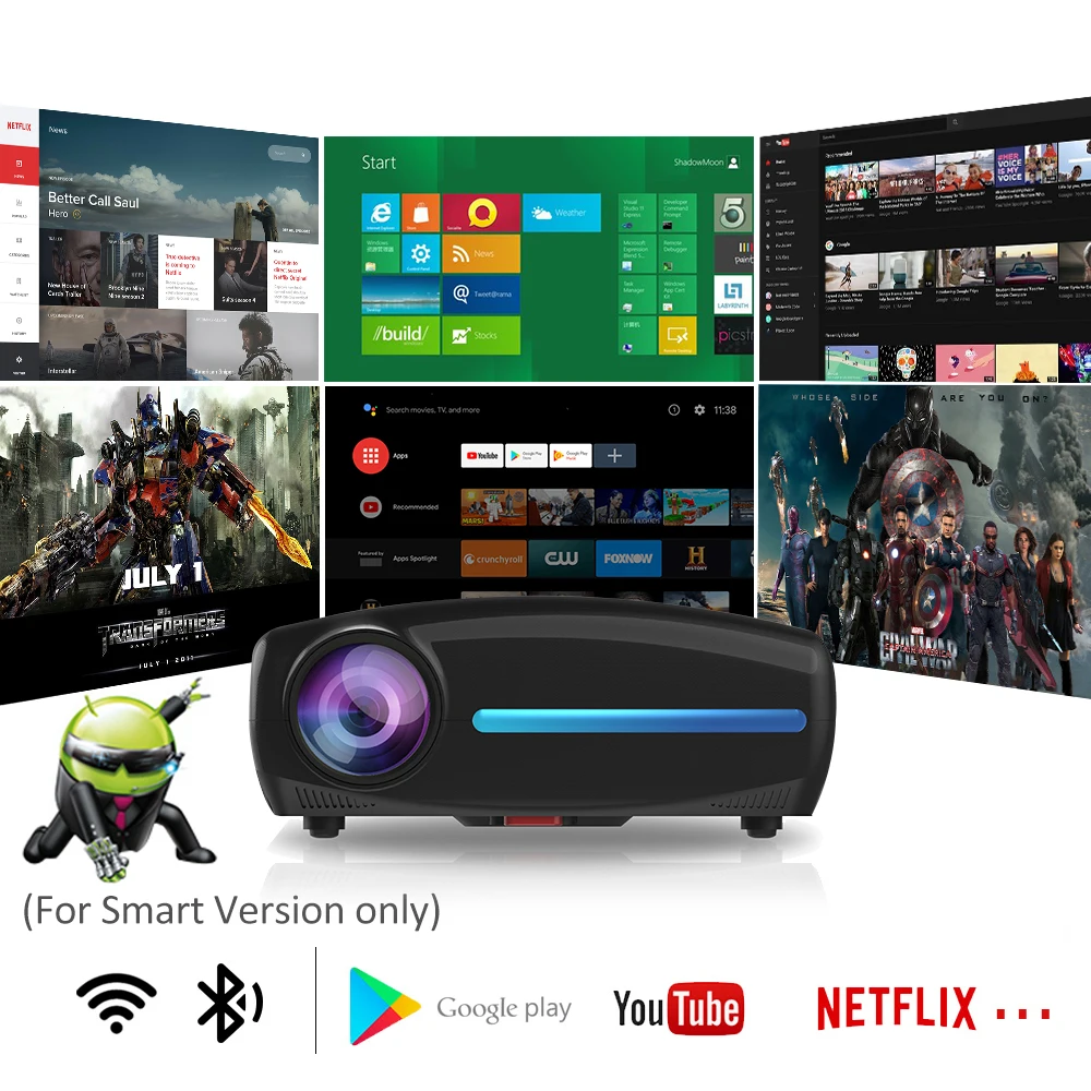 S4 проектор Встроенный anndroid 9,0, он может подключаться к смартфону/iphone/ipad без проводов annd может работать в Интернете, S2 pro после подключения приставки также может подключаться к WIFI и смартфону.