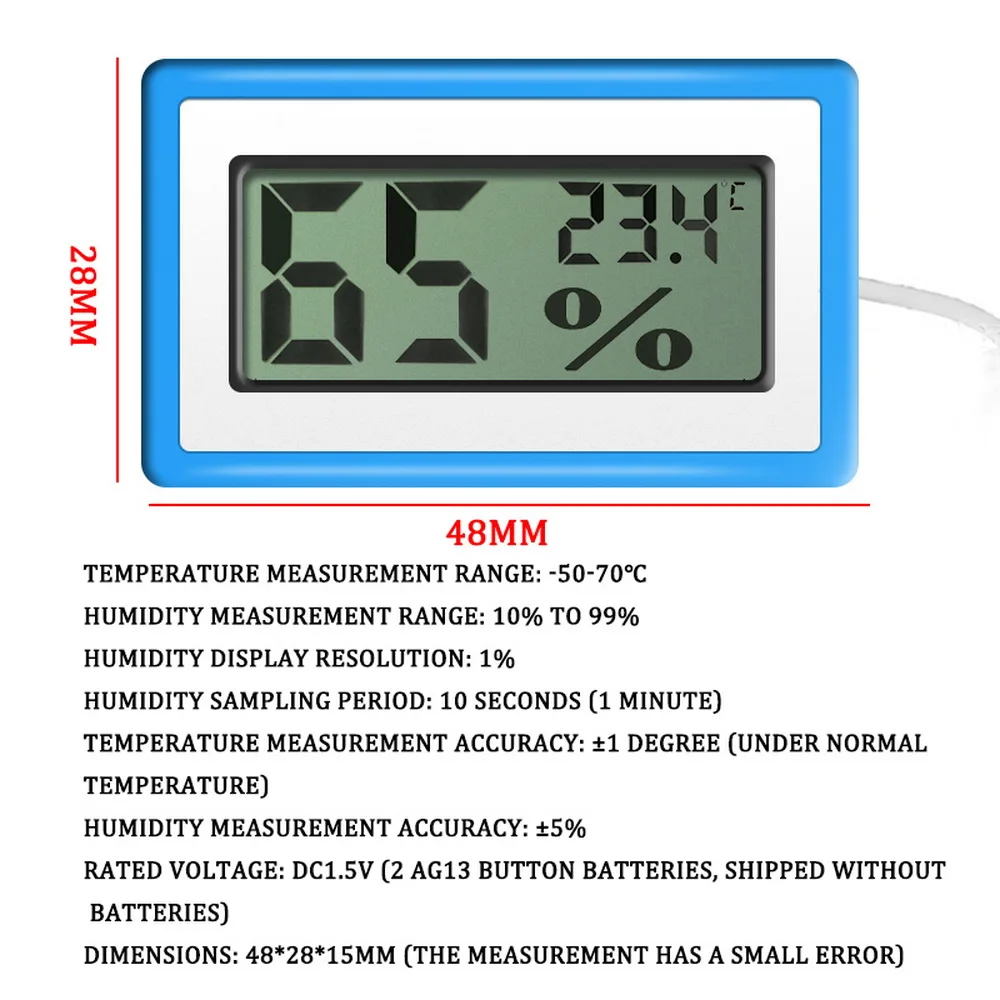 * Многофункциональность: измерительный прибор со встроенным зондом, предназначен для измерения температуры и влажности в помещении.