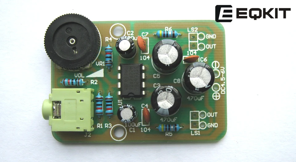 Kit brand: EQKIT Kit Name:Audio power amplifier Kit Model: AMP-1 PCB Size:51*36mm Working Voltage:DC4.5V--9V Speaker Size:50mm Speaker Power:0.5W