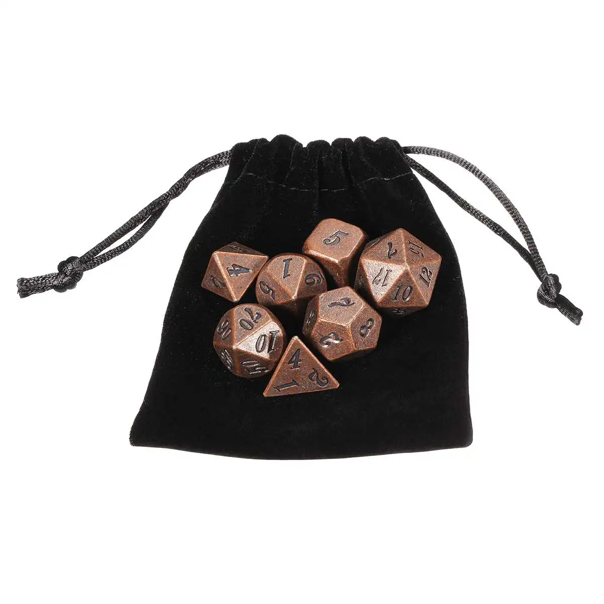 Каждый цвет поставляется с 7 различными игральными костями: 4, 6, 8, 10, 12, 20 сторонних игральных костей и процент (%) игральных костей.
