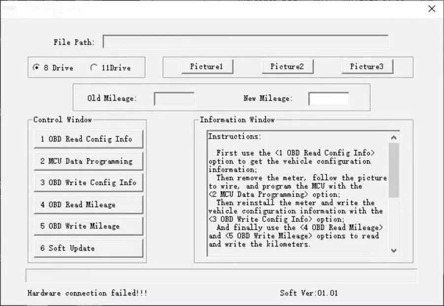 После подключения проводов в соответствии с схемой проводки, выполните операцию. Если данные MCU успешно отредактированы, проводка может быть удалена.Шаг 3: информация о конфигурации записи OBDИнформация о конфигурации-это данные, Считываемые на первом шаге, и вы можете выбрать сохраненные данные в это время;Затем вы можете получить запрос о том, что информация о конфигурации транспортного средства написана успешноНаконец, вы можете настроить пробегИспользуйте параметры <4 OBD для считывания пробега> и <5 OBD для записи пробега> для чтения и записи километров.Например, мы написали пробег 12345; Затем прочли его 12345 км.Посмотрите на приборную панель снова, Километры верны! Шаги завершены!