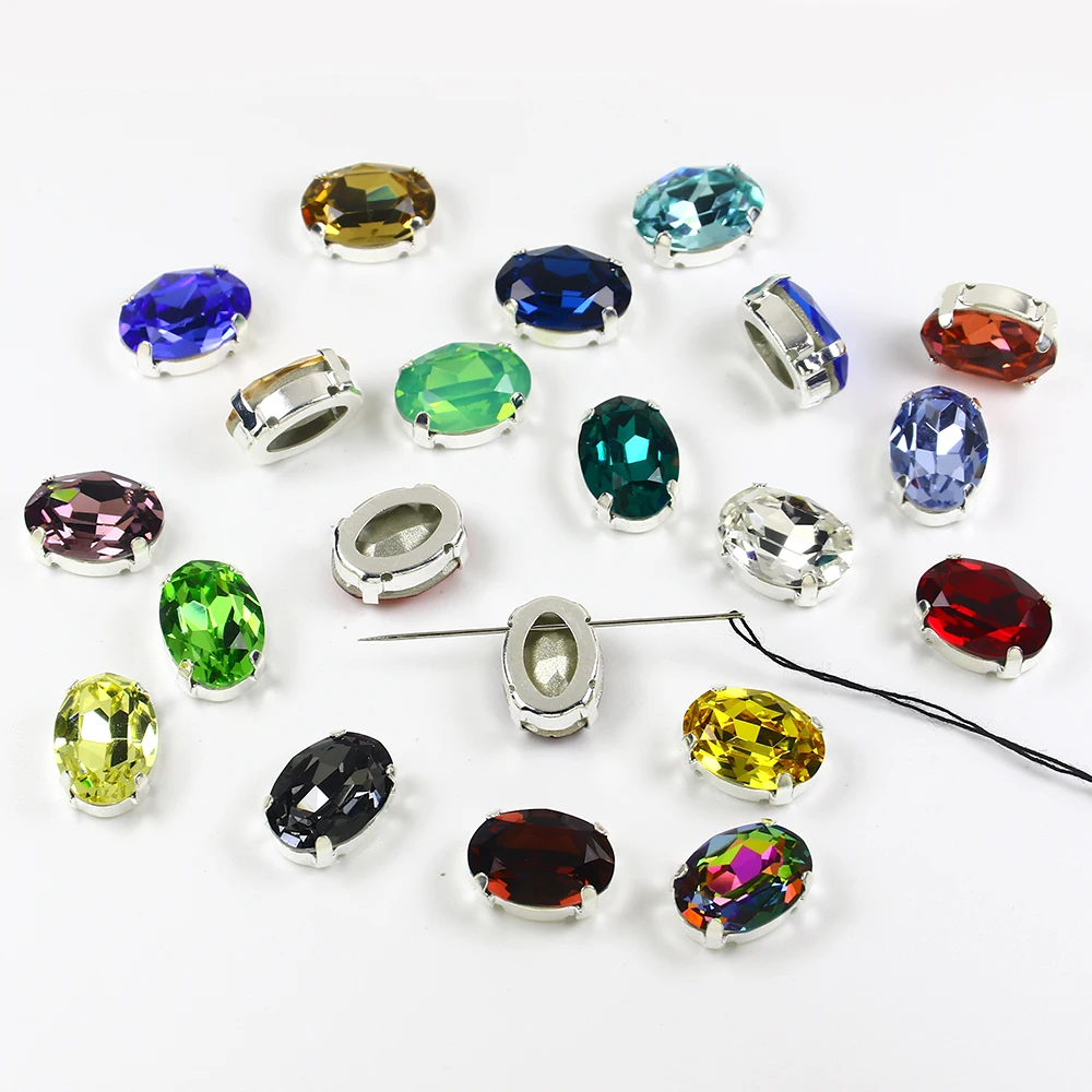 10*14 мм овальные Хрустальные стеклянные стразы с серебряными когтями, блестящие стразы, аппликация для рукоделия, обувь для одежды