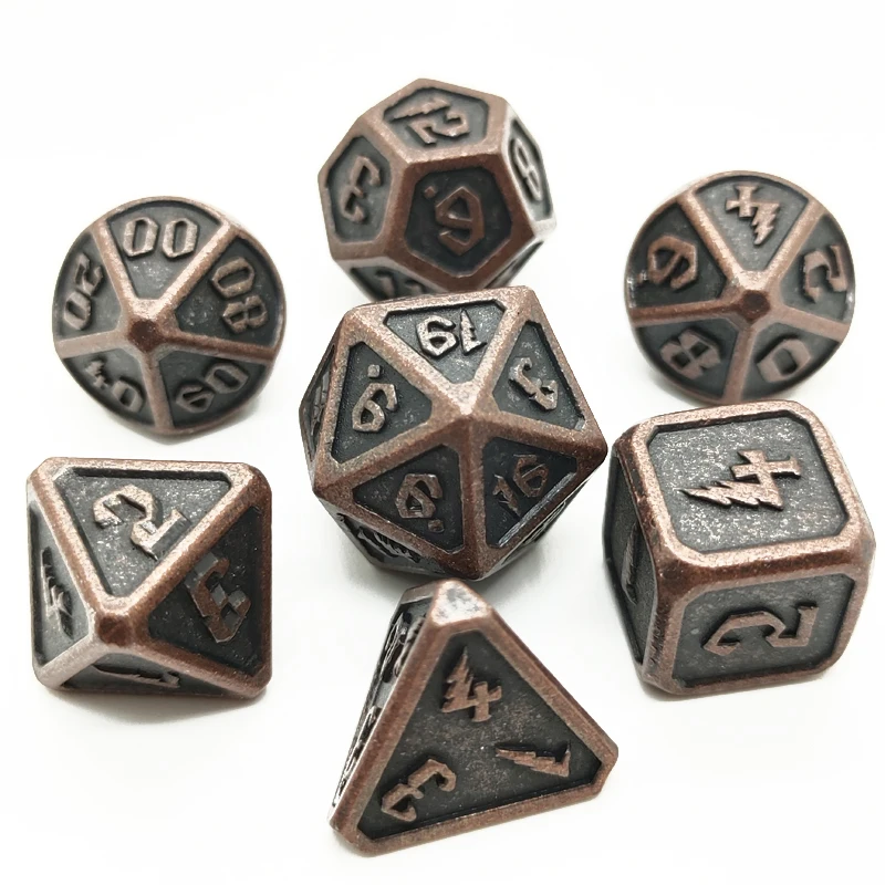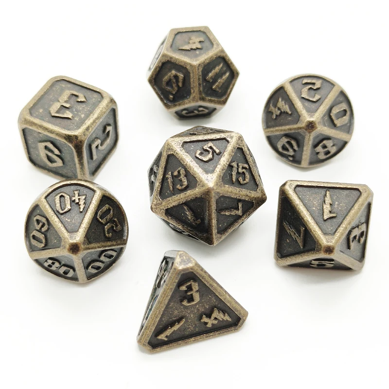Этот сверхмощный Набор из 7 многогранных штампов изготовлен из твердой металлической древней меди, золота, серебра, набор игральных костей будет выдерживать до многих лет тяжелого использования. 7 металлических многогранных костей содержит один D20, один D12, два D10 (00-90 и 0-9), один D8, один D6 и один D4. Каждая игральная кость с большими и легко читаемыми номерами. Костюм для подземелий и драконов кости MTG DND RPG игральные кости настольные игры, настольные игры, образование и школьные принадлежности. Посылка включает в себя: 7 штук многогранные кубики 1 шт Черная сумка Примечание: Из-за разницы между различными мониторами изображение может не отражать фактический цвет изделия. Пожалуйста, обратите внимание: Маленькие детали, пожалуйста, держите их подальше от детей. Требуется наблюдение взрослых.