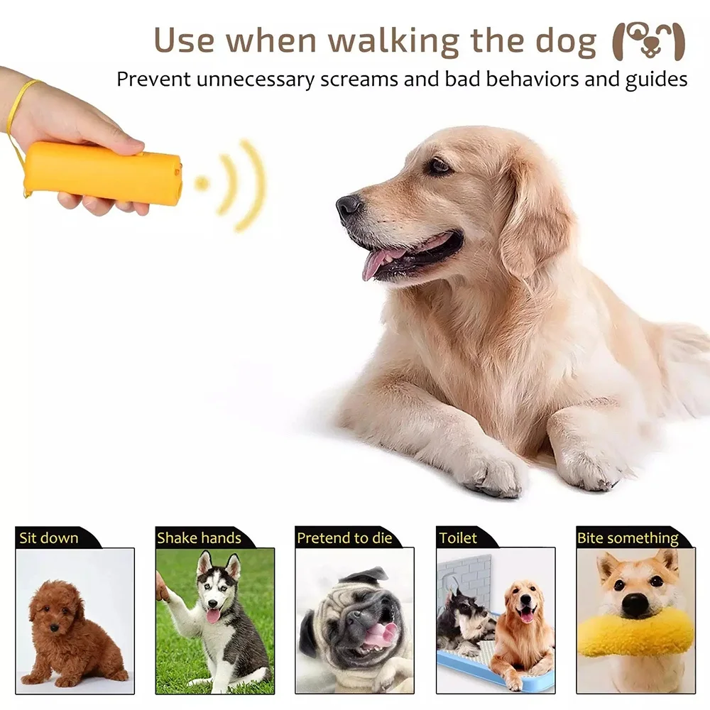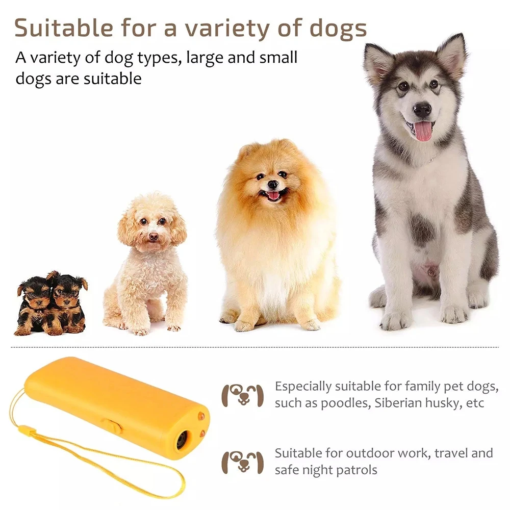 Этот продукт в основном используется для наружной среды для предотвращения атак собак. Когда вы столкнетесь с собакой, которая хочет нанести вам удар, пожалуйста, придумайте это супер оружие». Это оружие немедленно запускает ультразвук для собаки. Большое возбуждение 130 дБ ультразвука на слуху собаки. Супер-яркий мигание LED'S также делает собаку ясной, где источник и локатор оружия, чтобы понять, что вы против него. Чем дольше оставаться в этой позиции, тем больше вреда для него, который оставил хелтер-скелтер.