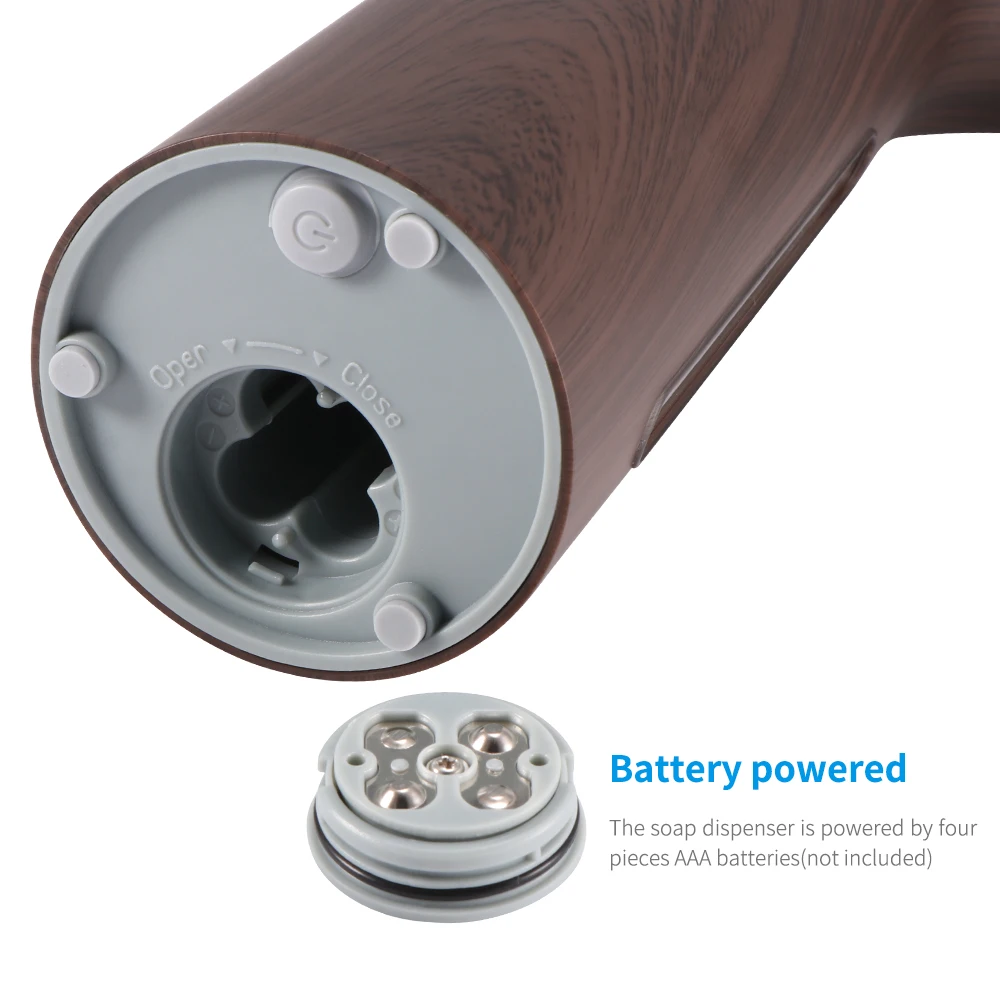 Диспенсер для мыла питается от четырех батарей AAA (не входят в комплект), без ограничения кабеля питания, который удобно разместить в любом месте, которое вам нравится.