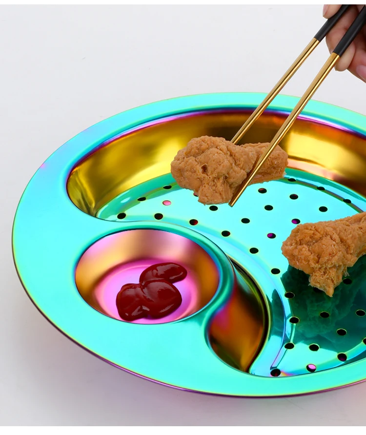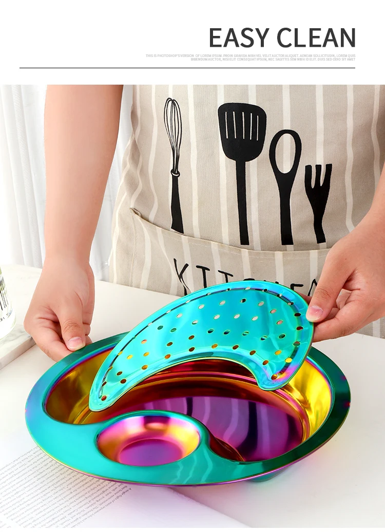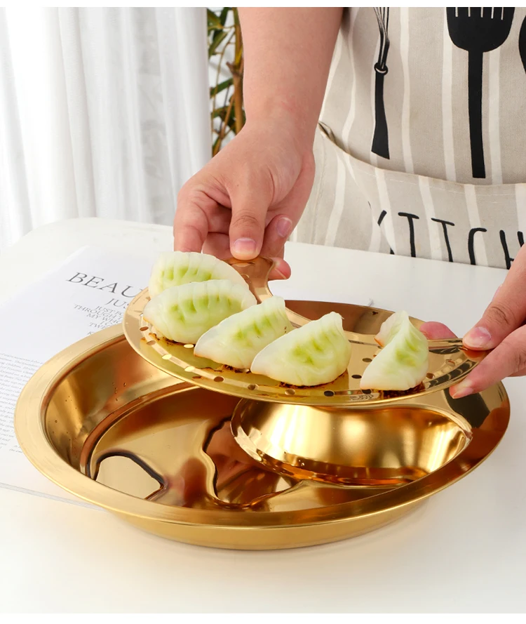 1 шт. креативная круглая тарелка для пельменей, кухня, нержавеющая сталь, специальная тарелка для ужина, уксус, блюдо, контейнер для еды, сливной двойной лоток