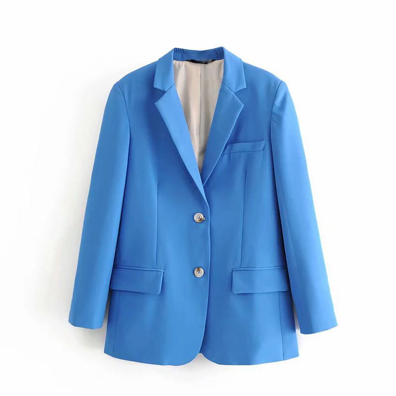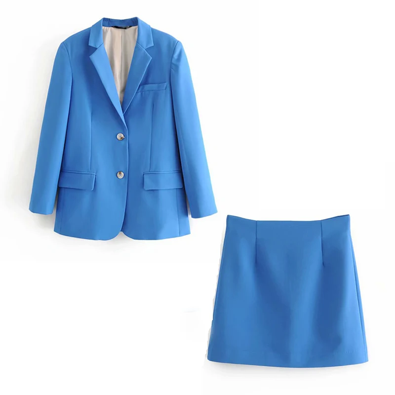 Осень 2020, синий винтажный комплект из 2 предметов, Женский комплект с юбкой, однотонный офисный Блейзер на пуговицах, куртка, пальто + мини-юбка на молнии, костюмы, женские топы