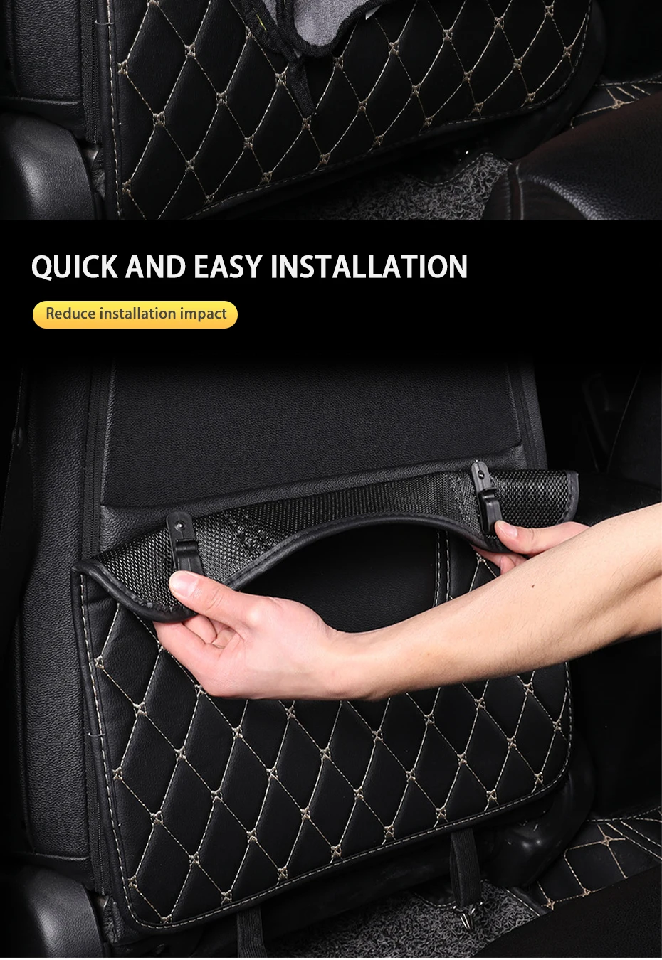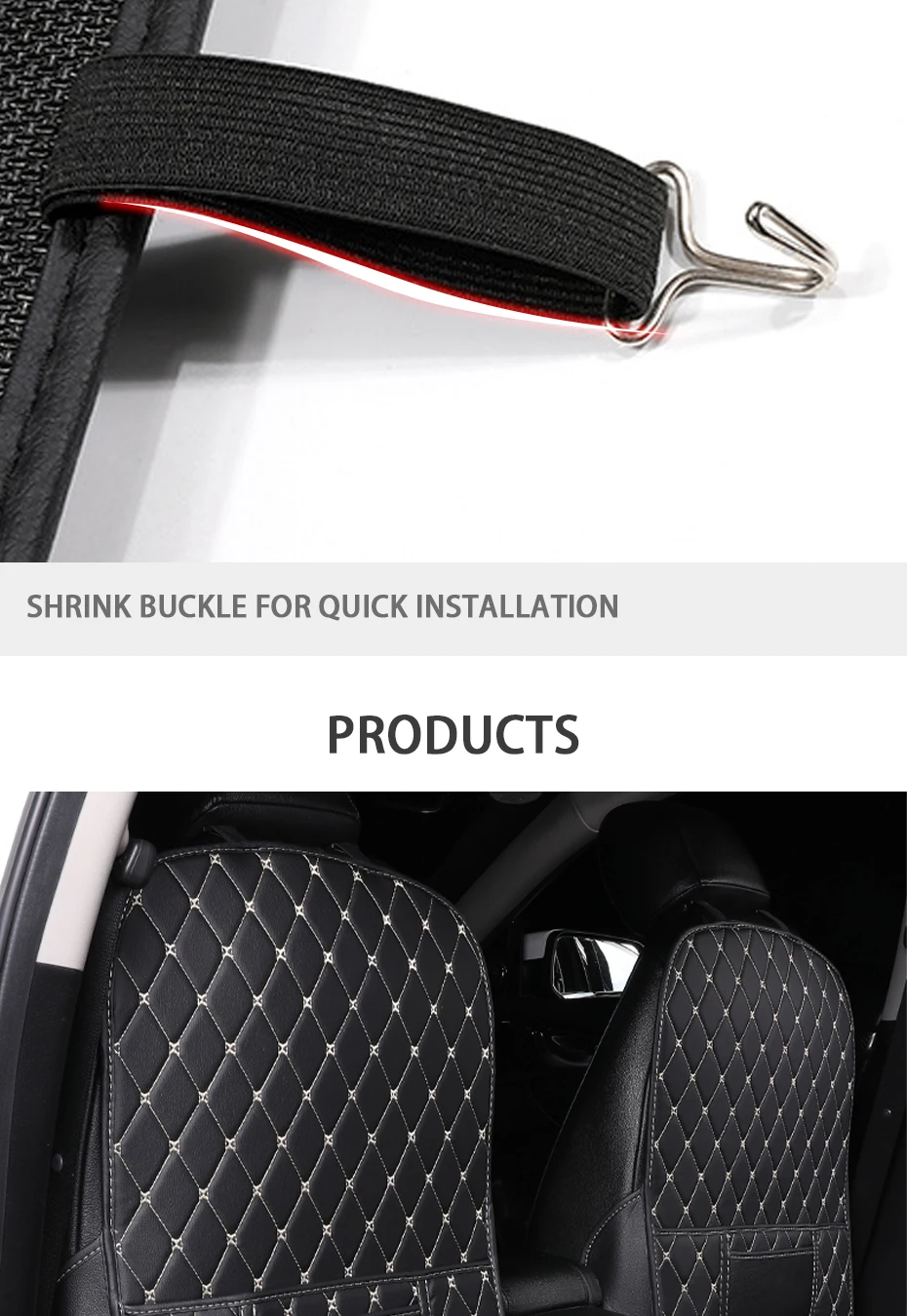 Накладка anti kick предназначена для предотвращения случайного царапания пассажирами заднего сиденья и загрязнения сиденья. Помимо защиты заднего сиденья, этот продукт также имеет дизайн хранения, простой и удобный, и он может лучше вооружать ваш автомобиль.