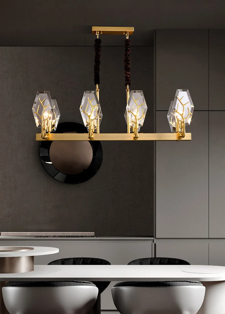 Высокое Качество Современная прямоугольная медная рога прозрачная Хрустальная люстра