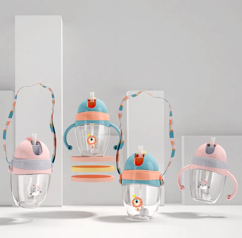 240/320 мл детская чашка с трубочкой и гравитационным шариком, детская бутылка для воды с защитой от протечек, ручка для питья, переносная чашка с ремешком на плечо