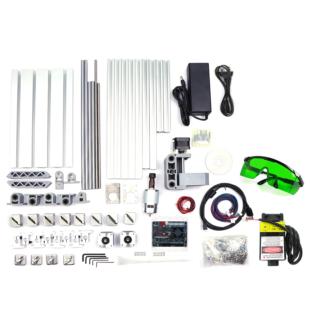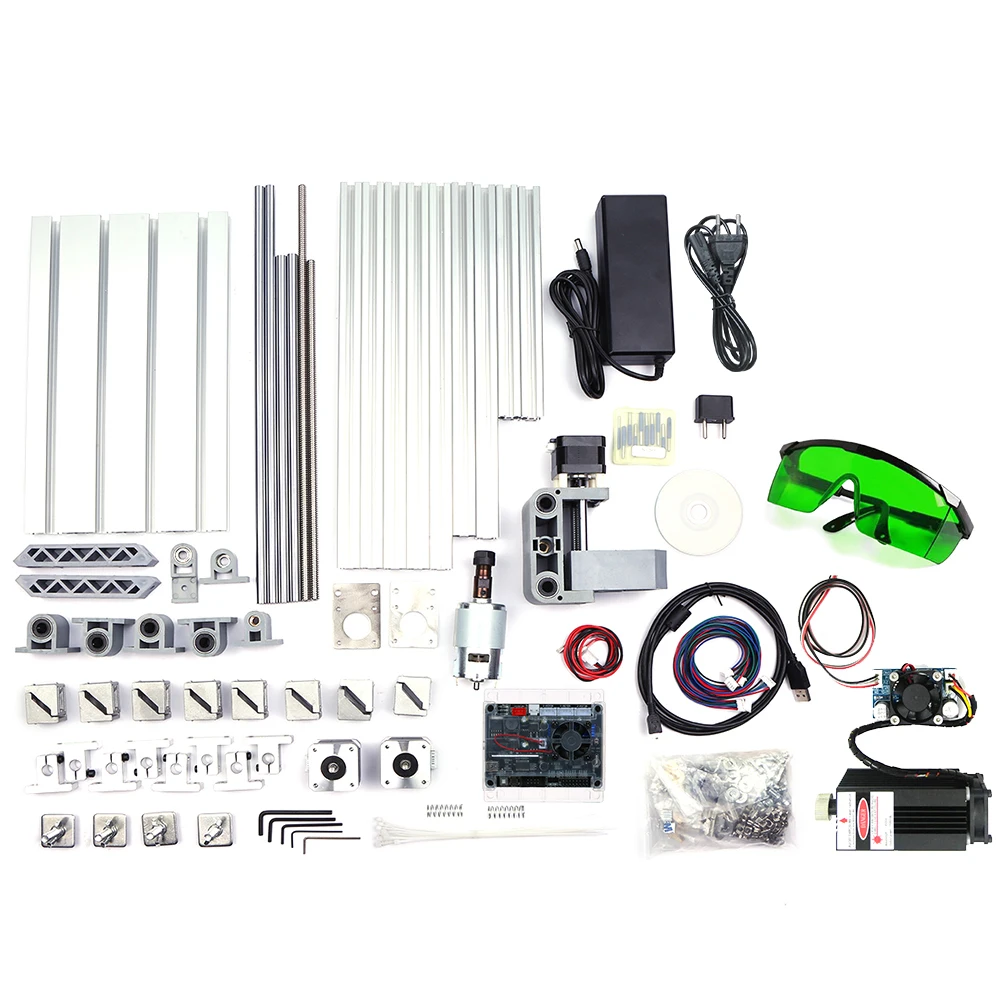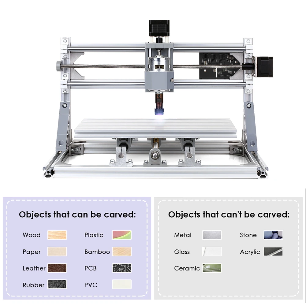 Этот DIY Лазерный Гравировальный Станок с ЧПУ специально разработан для DIY весело, учебы и исследований с профессиональным программным обеспечением управления GRBL, даря вам Экстремальный портативный опыт. Этот 2-в-1 лазерный гравировальный станок с ЧПУ отличается функцией гравировки, резьбы и фрезерования. На этом резьбовом станке можно гравировать пластик, дерево, акрил, ПВХ, ПХБ, дерево или аналогичный материал. Сверло не может гравировать твердый металл, нефрит или другие твердые материалы.