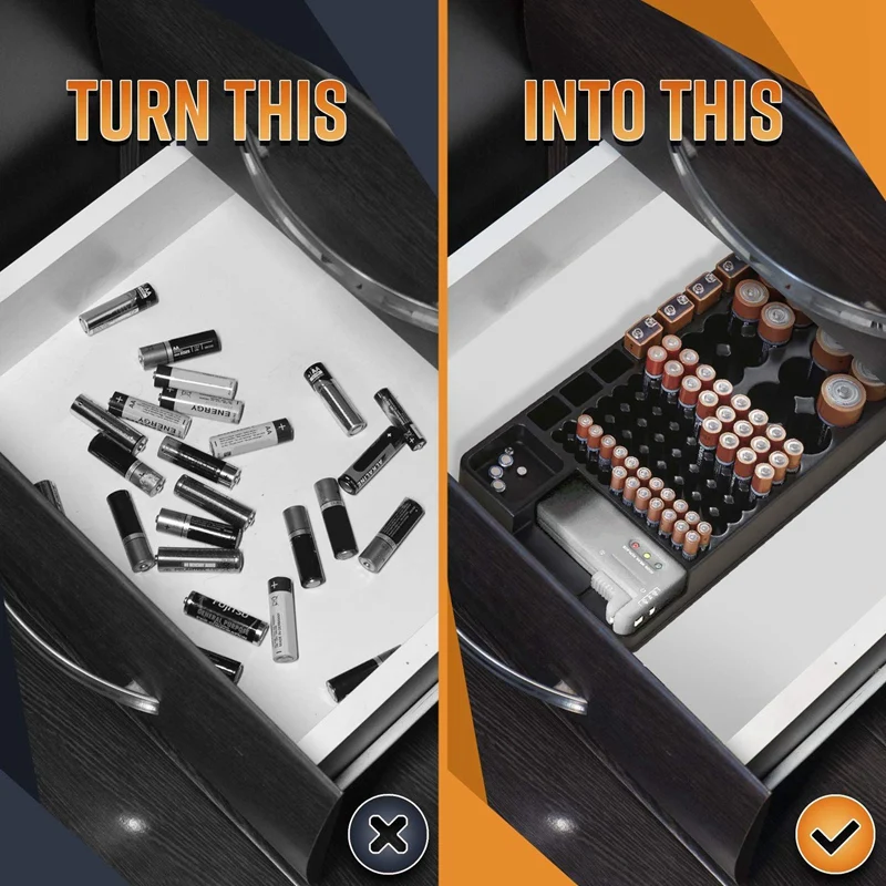 Мы все давно нуждались в этом контейнере для батарей! Этот органайзер для ящика батареи позволяет хранить батареи в центральном месте, сохраняя их от разрядки или утечки на окружающих металлических предметах. Большая емкость аккумулятора и органайзера из более чем 100 батарей, которые будут храниться, безусловно помогает, когда есть другие сопоставимые продукты, держащие около 80 или около того батарей.