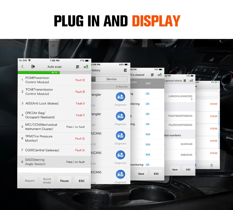 -- Технология Auto VIN автоматически определяет транспортные средства. -- Создание отчетов о ремонте проверенных транспортных средств и поддержка формата PDF для удобного обмена информацией и печати. -- Ведите записи о транспортных средствах, проверенных ранее.