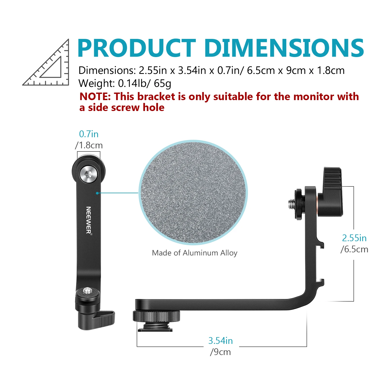 Примечание: Этот кронштейн подходит только для монитора с отверстием для бокового винта, не подходит для монитора с отверстием для винта на дне. Пожалуйста, проверьте свой монитор перед покупкой. Полевой монитор в комплект не входит.