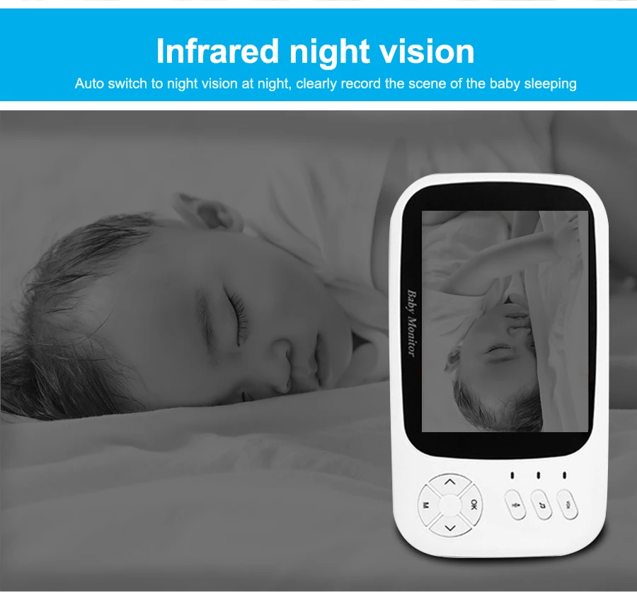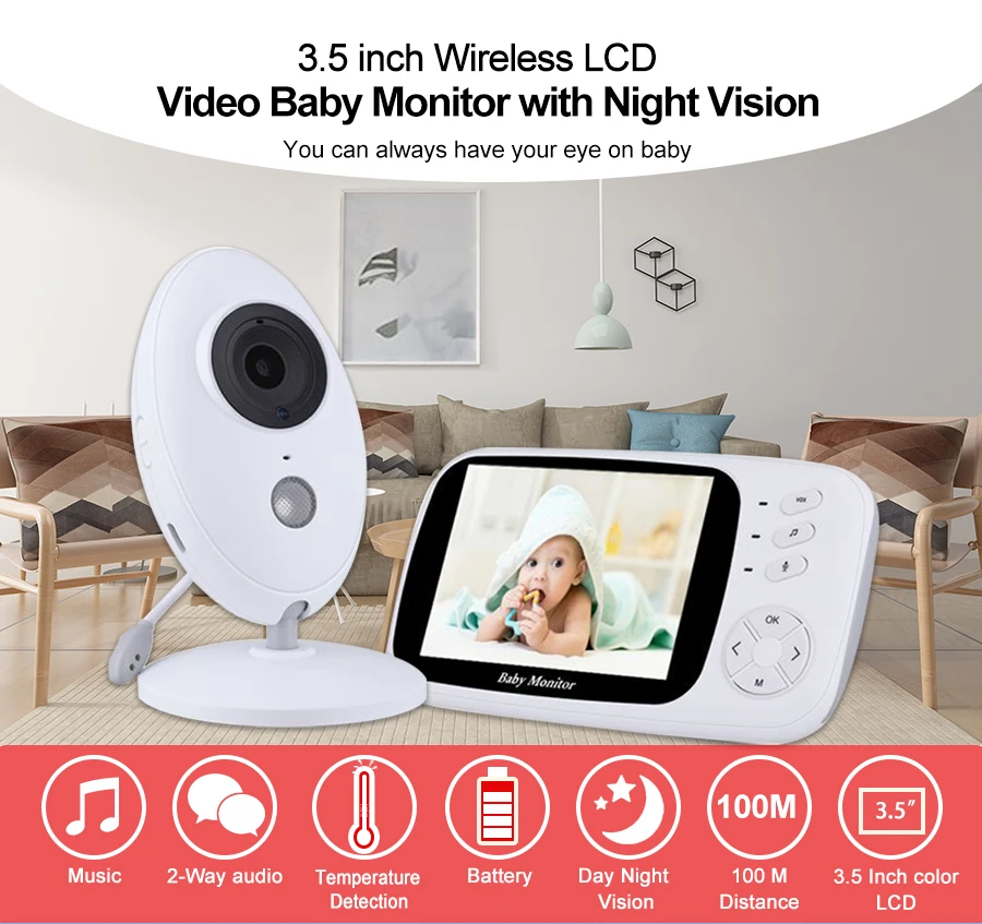 Беспроводная передача данных Портативный блок легко взять его 3,5 "Широкий ЖК-монитор Двустороннее аудио Встроенный conforting музыка С датчиком температуры