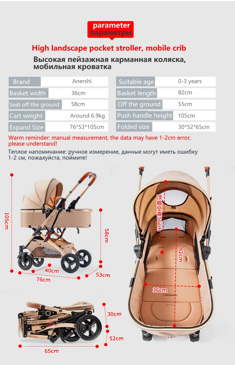 Детская коляска с высоким ландшафтом 2 в 1, ультра-светильник, коляска, складная, сидящая, с амортизирующим карманом, коляска для новорожденных