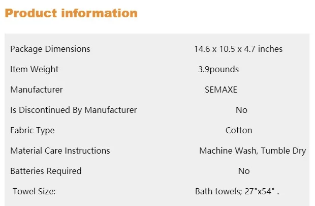 4. Легкий уход, машинная стирка и сушка: стирка в холодной воде, сушка в стиральной машине на низком уровне. Стирать отдельно перед первым использованием. Наши полотенца являются экологически чистыми; Они становятся мягче при каждой стирке, без химических веществ, естественных красителей, которые безопасны для вас и окружающей среды.