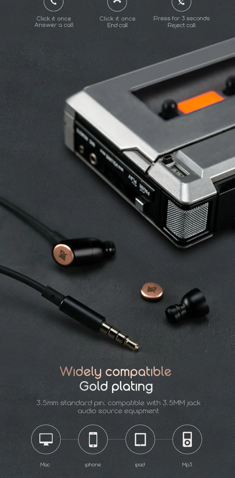Newest AUGLAMOUR T200 6mm PET Crystal Diaphragm Moving Coil Wired in ear earphone HiFi Headset Earbuds With Microphone