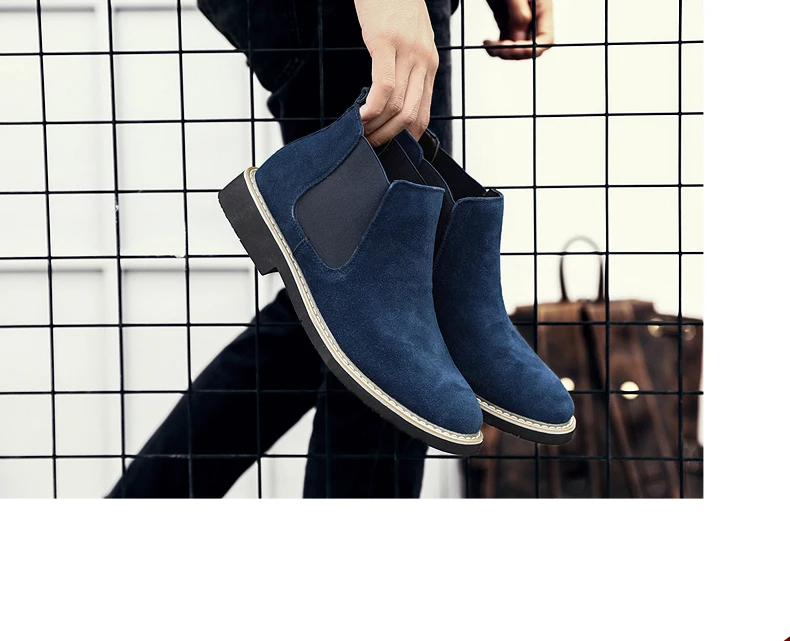 Мужские ботинки «Челси»; Замшевые классические мужские ботинки с высоким берцем без застежки; Ботильоны из натуральной кожи; Модные ковбойские мужские ботинки; Zapatos