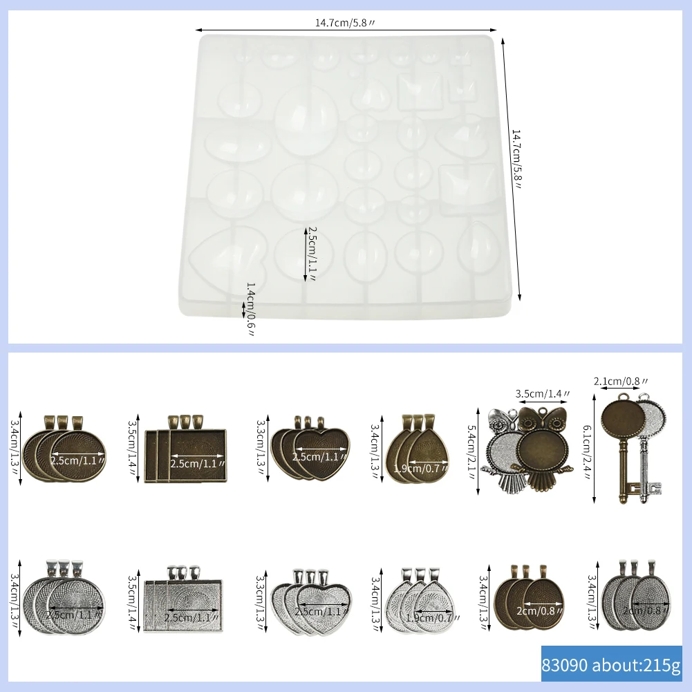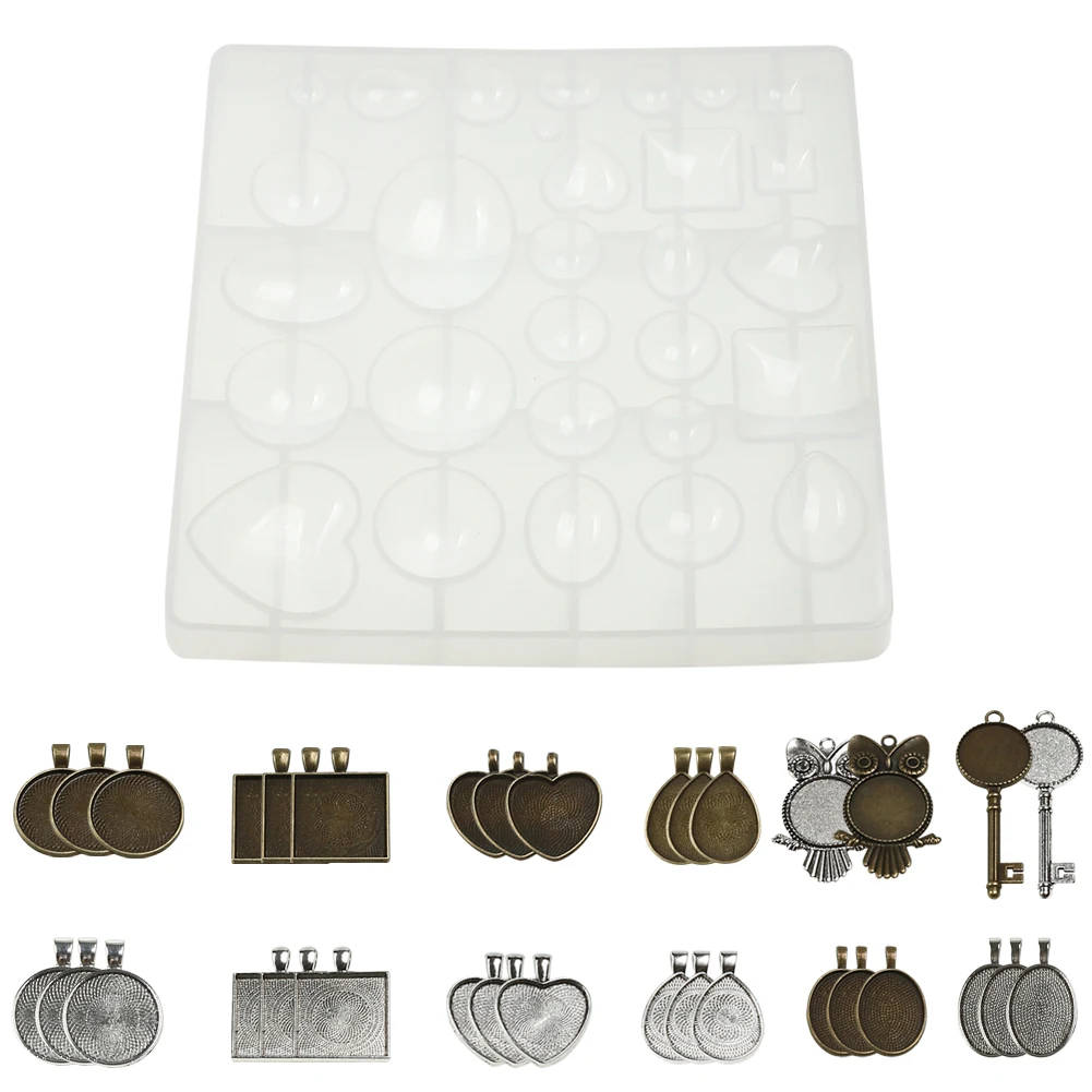 Особенности: 100% новый и высокое качество. Многоразовые, прочные, легко отклеиваются, легко моются. Широкое применение-может быть применено для diy различных ручной работы и ювелирных изделий, таких как брелок, серьги, ожерелья, подвески, браслеты и многое другое, с множеством операционных инструментов, поможет вам сделать их более легко. Спецификация: Размер: как показано на фотографии Высокое качество ювелирных изделий формы материал силикона, который является гибким и гладким. В комплект входит: 1 x силиконовые формы для смолы, 34 подвесных лотка.