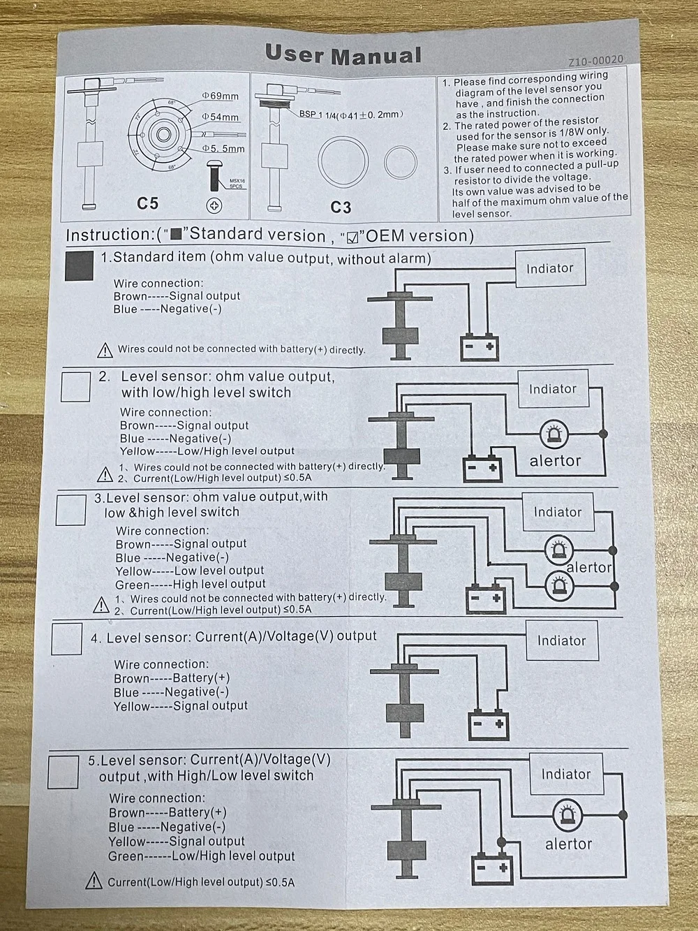 -Рабочий ток ≤ 60 мм -Размер крепления: 52 мм (2 ") -Диапазон индикации: E-1/2-полный -Сигнал: 0-Ом/-33 Ом -Продолжительное Рабочее напряжение: 9-32 В, до: 36 В (≤ 1 минута)