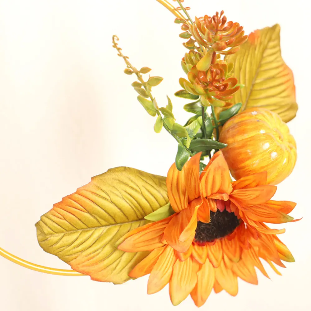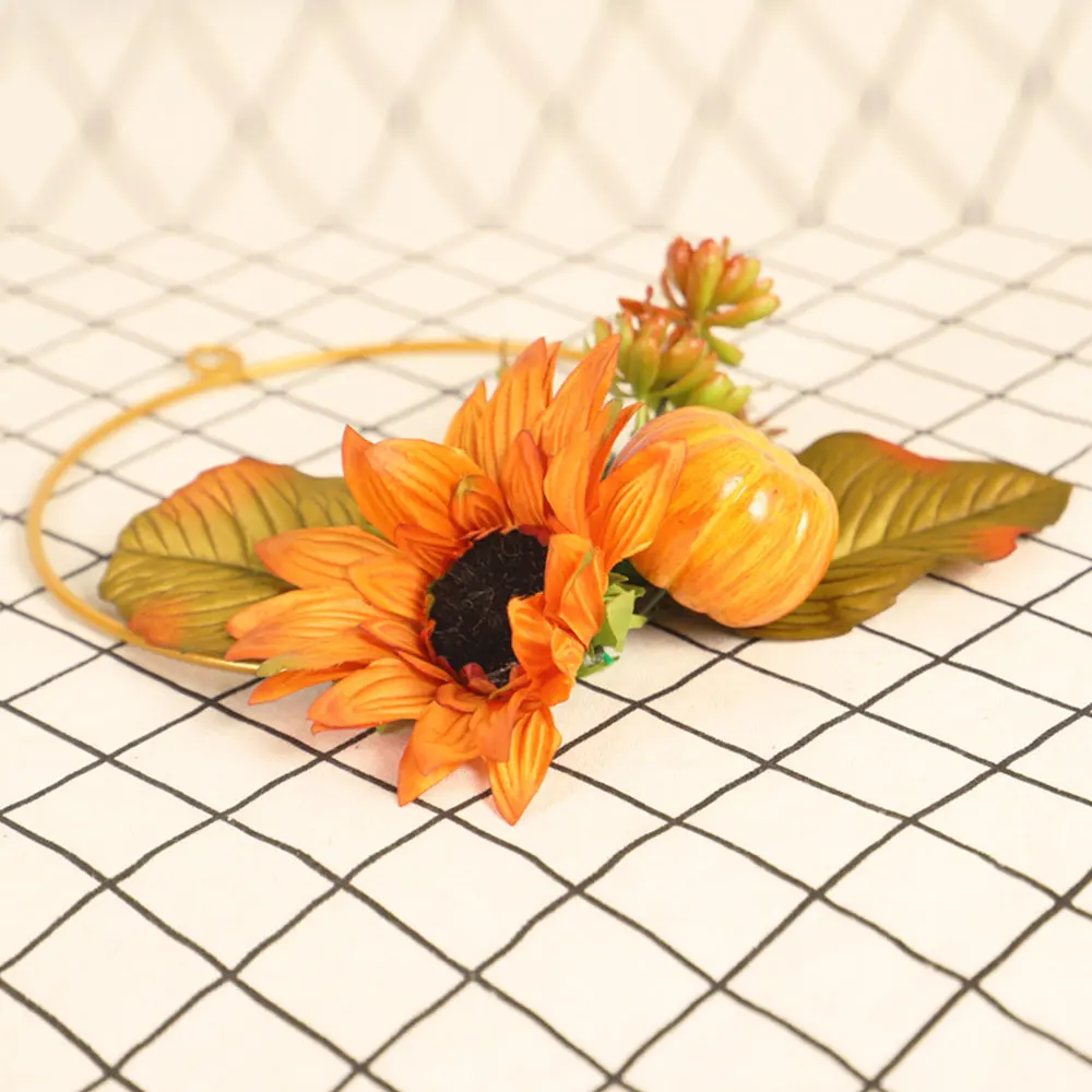 25CM Metal Ring Wedding Thanksgiving Harvest Wreath Artificial Sunflower Pumpkin Hoop Home| Font Door Wall Hanging Decoration