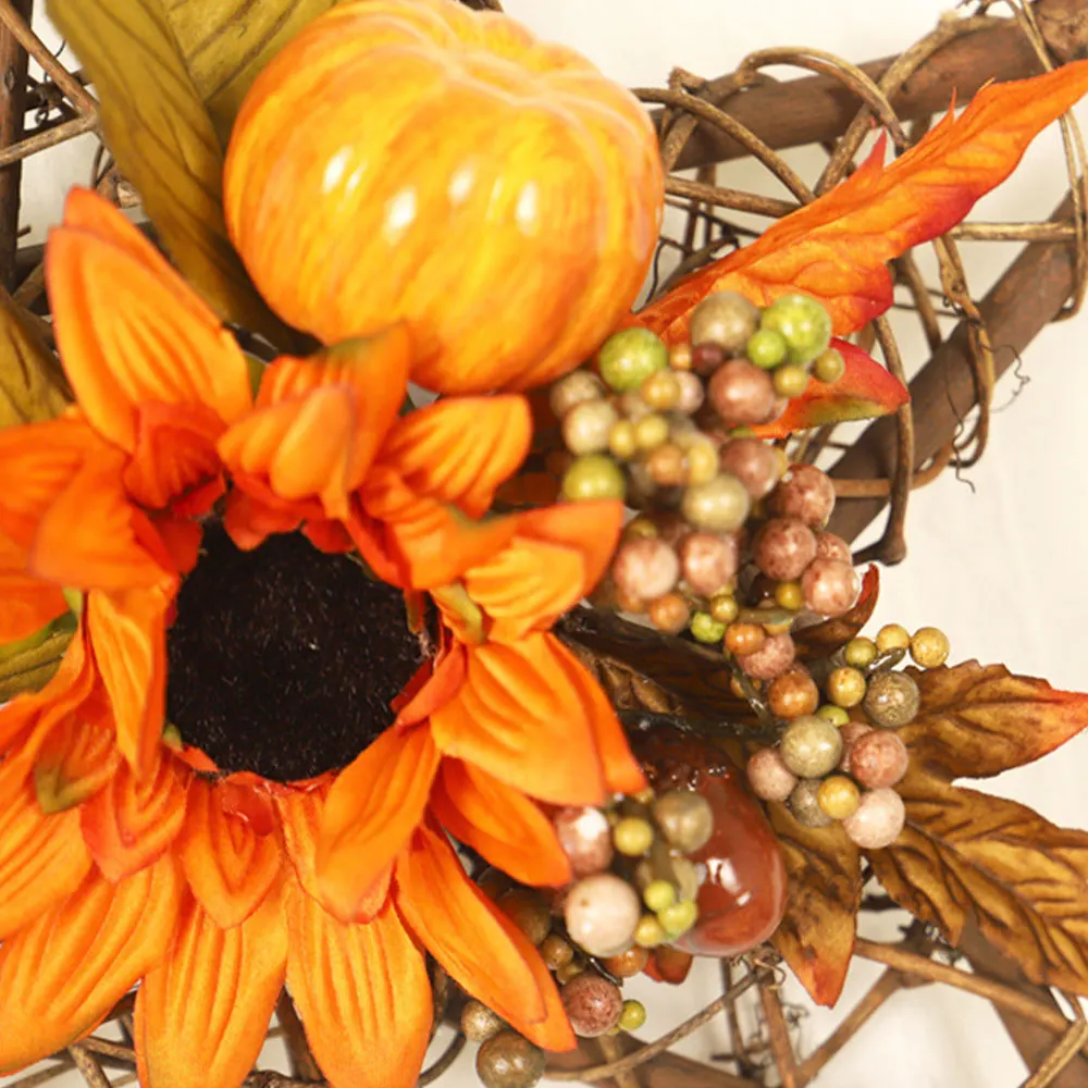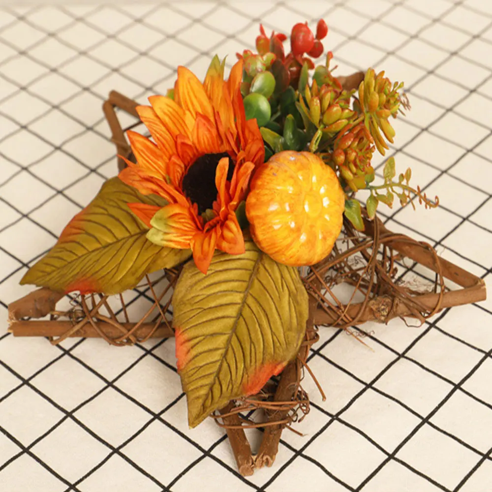 Искусственный цветок, Осенний венок с деревянной звездой, Подсолнухи, кленовые листья, декорированные для настенной двери, декор на День Благодарения