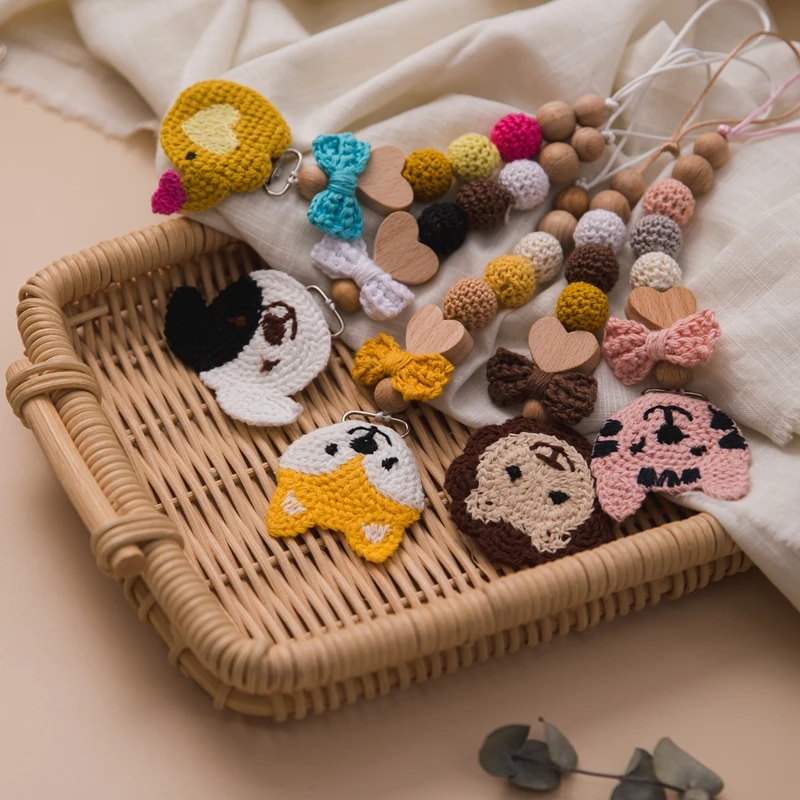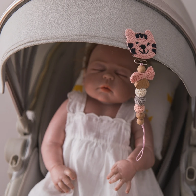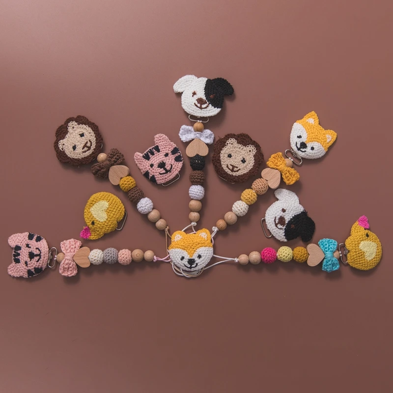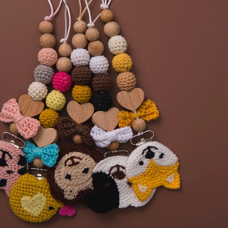 Детская Соска с зажимом на цепочке, вязанные крючком бусины, деревянный держатель, мультяшная Соска с зажимом, держатель для соски для младенцев, зажим для бутылочки