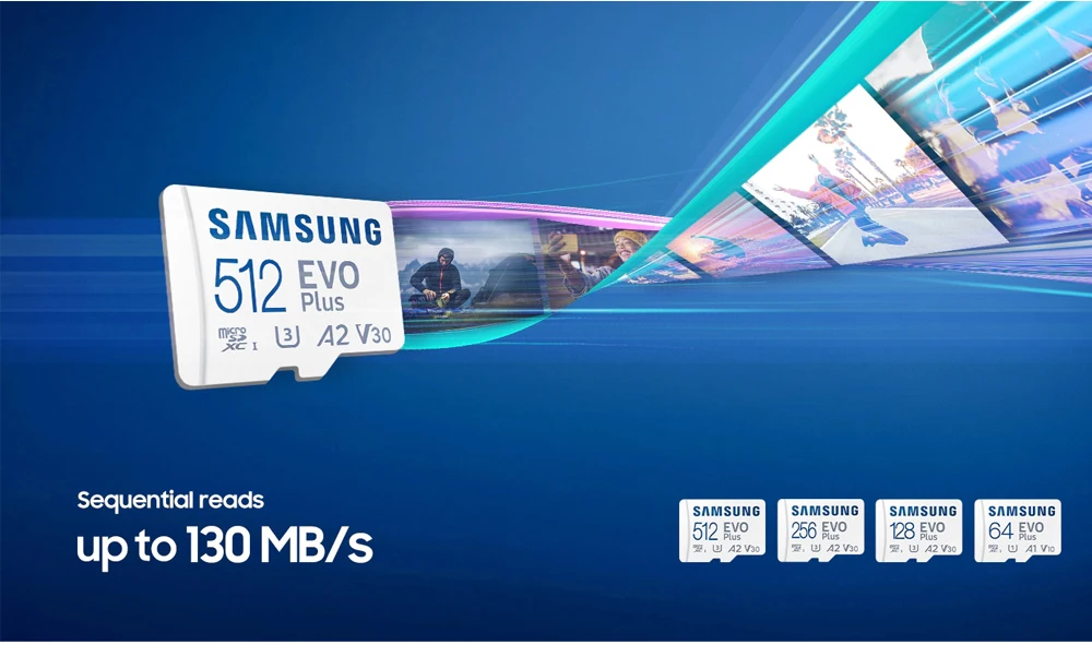 Легко обрабатывать большие файлы. EVO Plus поддерживает класс скорости U3, класс 10 и обеспечивает надежную передачу данных со скоростью до 130 МБ/с./с. 1, 2 больших приложения также могут загружать и работать плавно, и 4K видео хорошо работают с поддержкой A2, V30 и UHS-1. 3