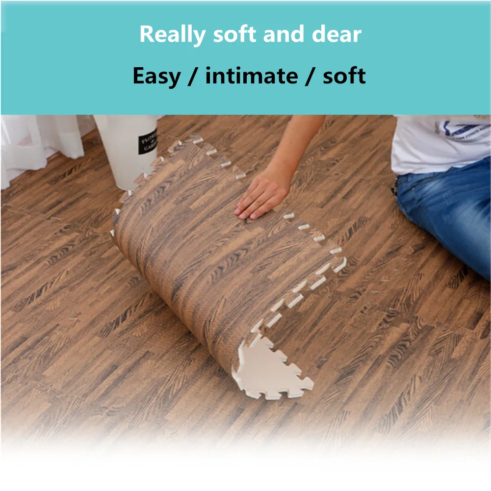 *1. Material: EVA foam *2. Specifications: 30*1.0 (single strip with side strips) *3. Color: white wood grain, light wood grain, dark wood grain *4. Shape: Square *5. Pattern: Stripes