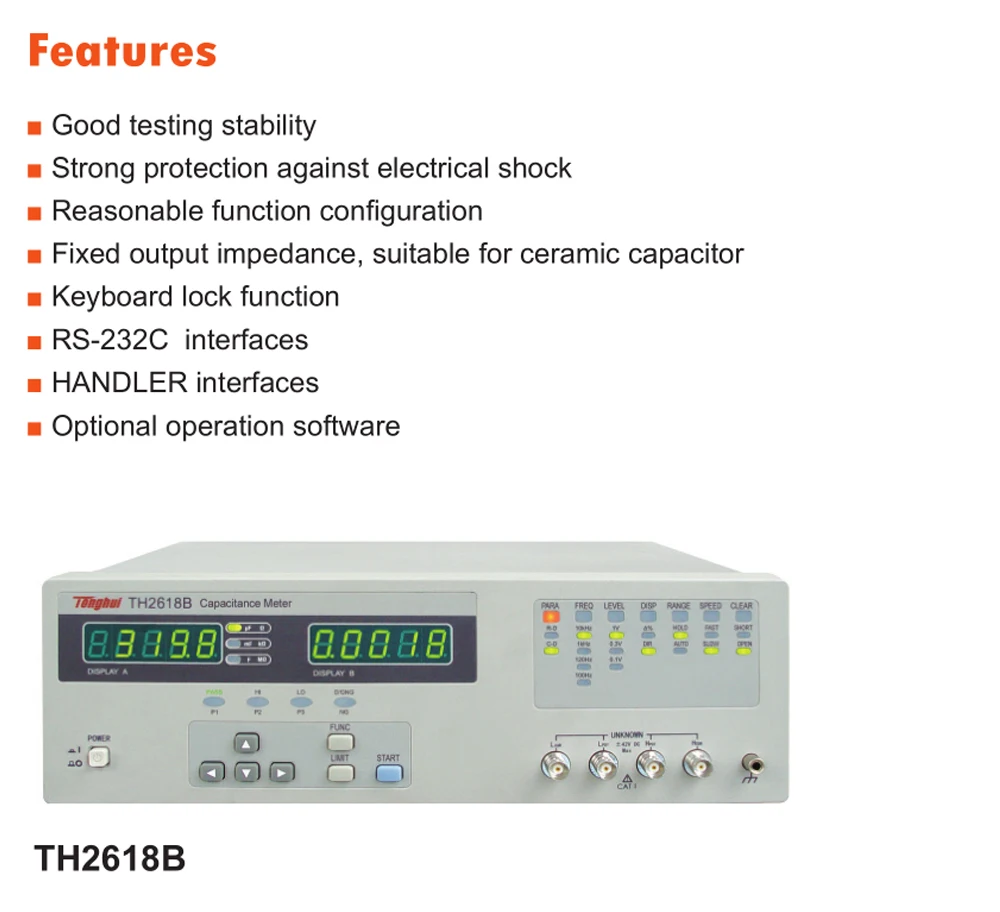 Tonghui TH2618B Настольный измеритель емкости/измерительный прибор 0.1% точность 100/120/1k/10k Гц