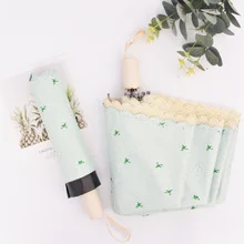 Небольшой кружевной солнцезащитный зонтик Корейская версия маленького свежего черного резинового УФ солнцезащитного зонта простой и элегантный студенческий зонтик