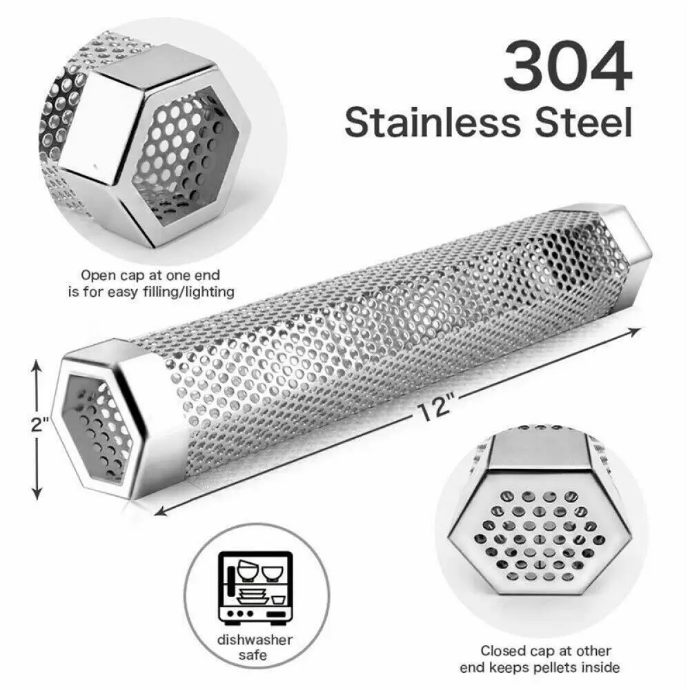 12 "из нержавеющей стали наружные древесные гранулы для гриля курильщик фильтр труба дым барбекю Характеристика 1. Трубка для курильщика имеет массивные Диффузионные отверстия на своем теле. Таким образом, трубка для курильщика может пропускать воздух, эффективно и равномерно рассеивать дым на вашу еду 2. Перфорированная конструкция и шестиугольная форма курильщика труб позволяют гранулам оставаться горящими лучше и полностью гореть, чтобы обеспечить постоянный дым 3. В отличие от традиционной круглой трубки для курильщика, специальная шестиугольная трубка для курильщика может оставаться стабильно и не скатывается на решетке для гриля 4. Вся трубка для курильщика изготовлена из высококачественной нержавеющей стали марки 304, которая является антикоррозийной и термостойкой. Благодаря отличному качеству изготовления, трубка для курильщика очень прочная и не будет сломана или согнута после длительного использования 5. Трубка для курильщика работает на любом электрическом, газовом, угольном гриле или курильщике, с чистящей щеткой и крючком, это поможет легко очистить остатки, а крючок s-типа может использоваться для подвешивания инструментов для гриля, что удобно для хранения 6. Откройте tantalizing и незабываемые дымчатые ароматы в вашем мясо, рыбу, овощи, сыры, орехи и многое другое для смелых новых вкусов Спецификация Материал: нержавеющая сталь Цвет: серебристый Размер: Approx.5 x 5x30,5 см Форма: Шестигранная Функция: курить барбекю Применимо: электрический, газовый, угольный и портативный гриль Список посылка 1 х курильщик для барбекю 2 x чистящий крючок Чистящая Щетка-1 шт.