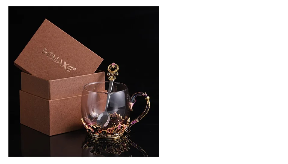 Эта изысканная чашка, произведенная компанией SEMAXE, является идеальным сочетанием бессвинцового стекла и металлического сплава.