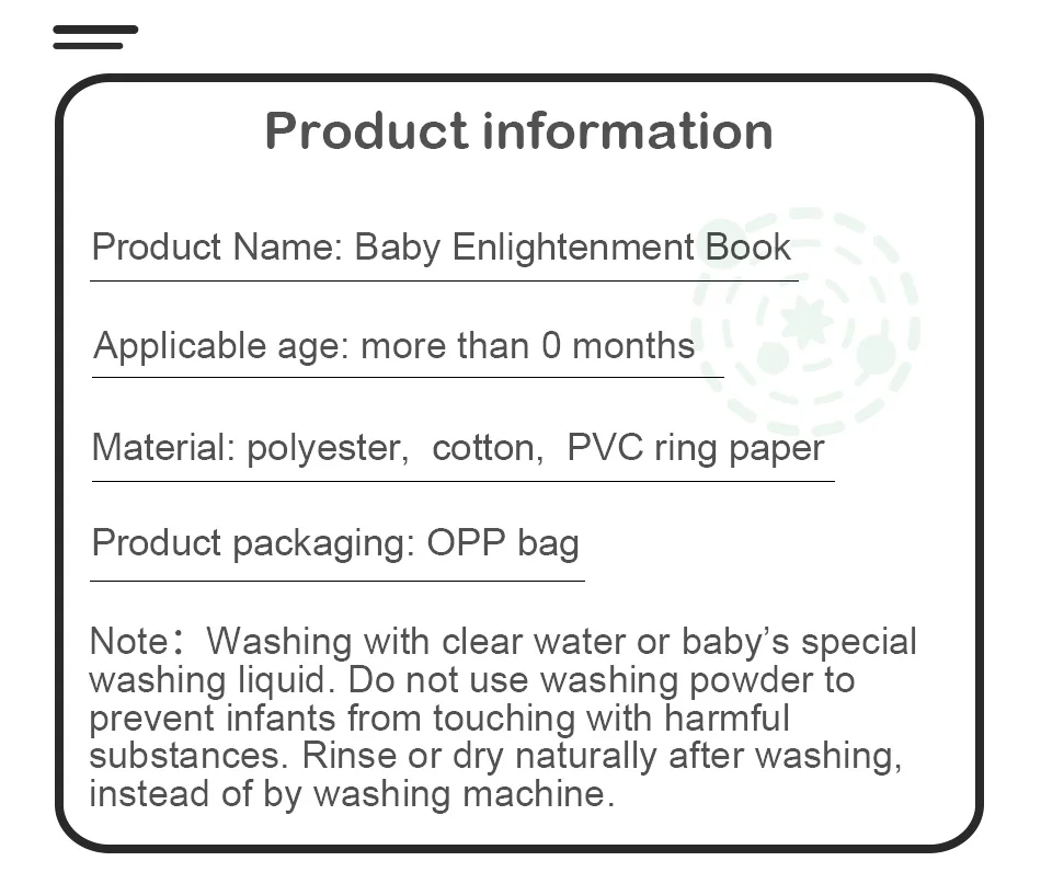 Посылка включает в себя: 1 тканевая книга для малышей