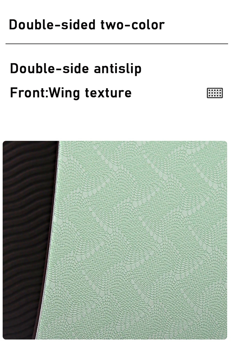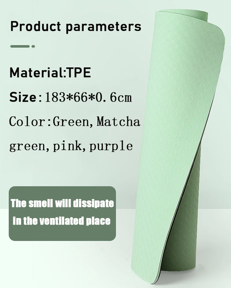Материал: TPE Размер: 183*66*0,6 см (72*26*0,24 дюйма) Пользователь: теннисники, взрослые Особенность: двухсторонние противоскользящие, мягкие. Прочные, перерабатываемые экологически чистые материалы Функция: тренировка йоги Begineers в домашнем зале Посылка ция: коврик для йоги с ремешком 1 шт