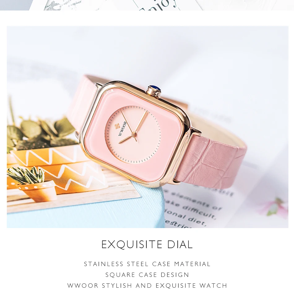 WWOOR 2021 Топ бренд женские повседневные розовые часы женские прямоугольные кварцевые наручные часы Роскошные минимализм женские водонепроницаемые Zegarek Damski