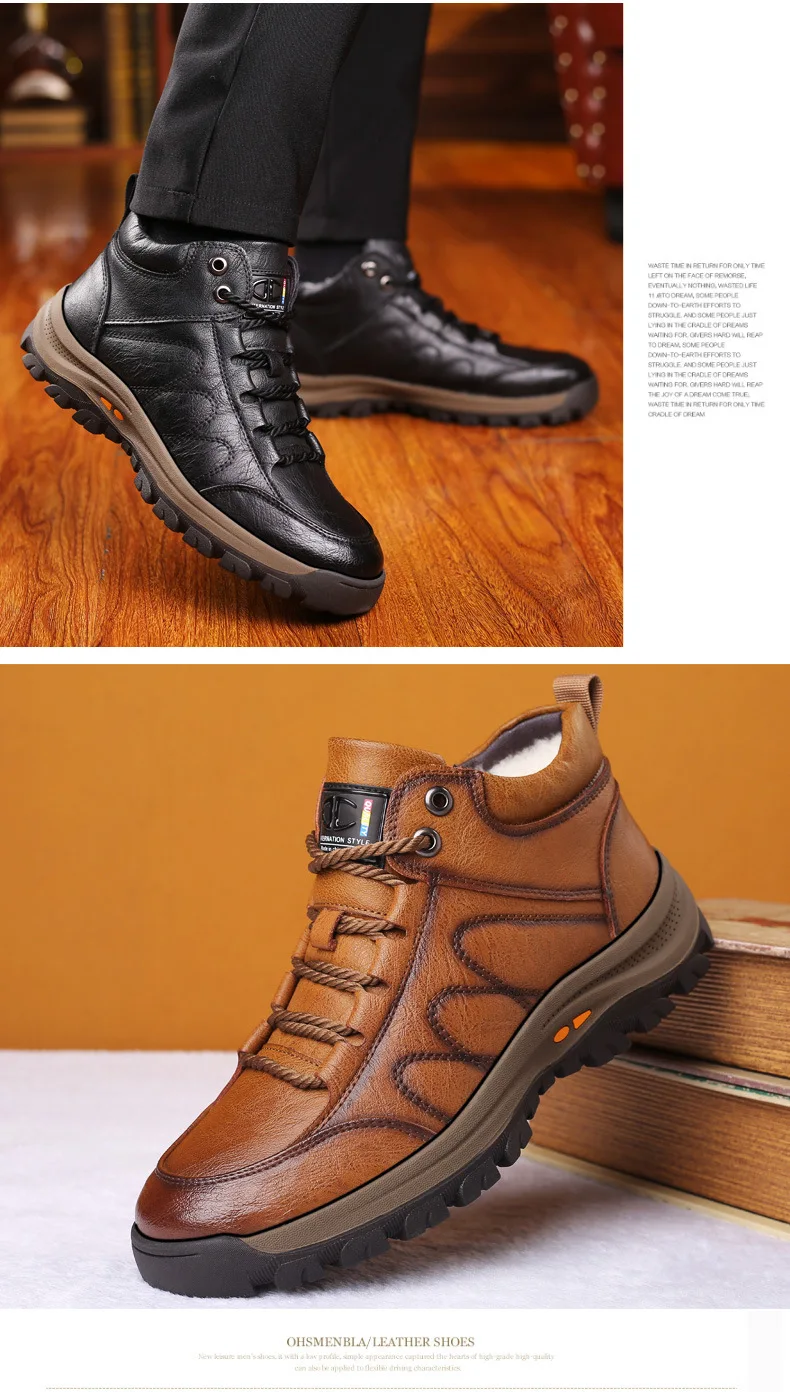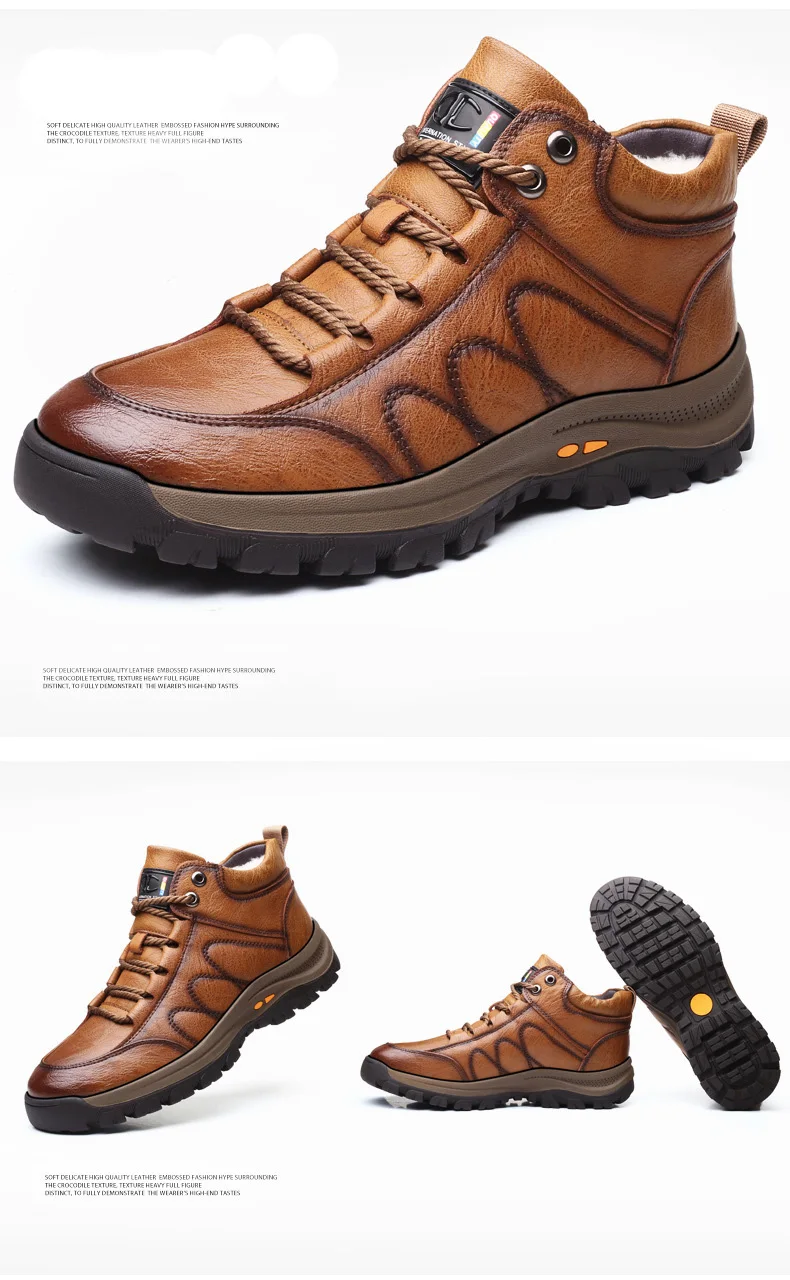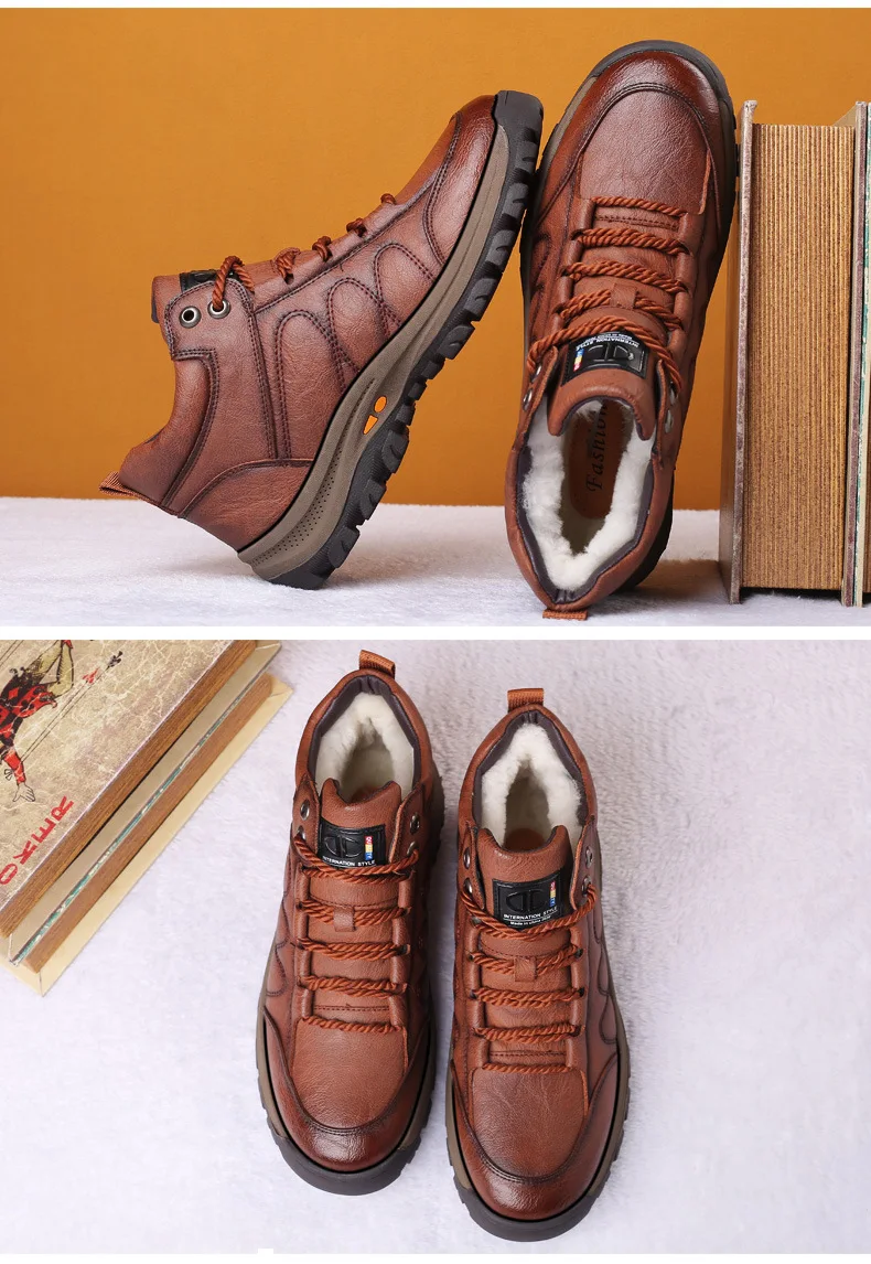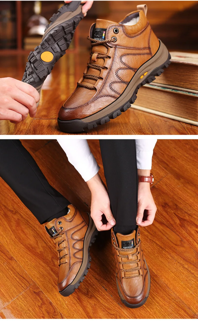 Зимние теплые мужские ботинки из натуральной кожи на меху; Уличные зимние ботинки ручной работы; Водонепроницаемые рабочие Нескользящие ботильоны