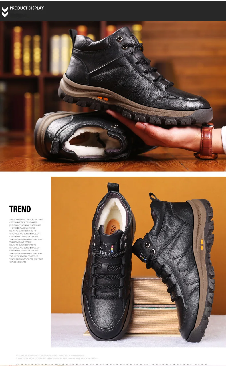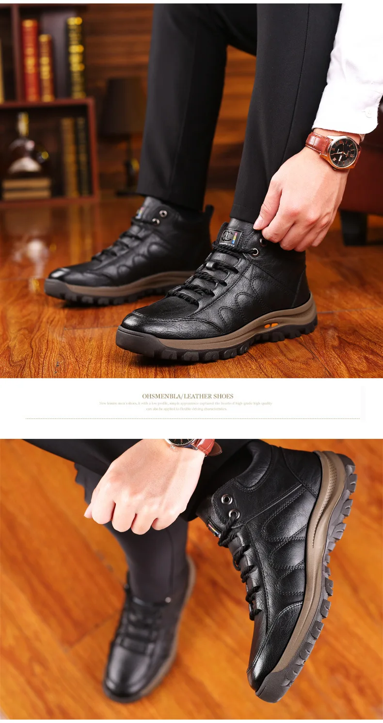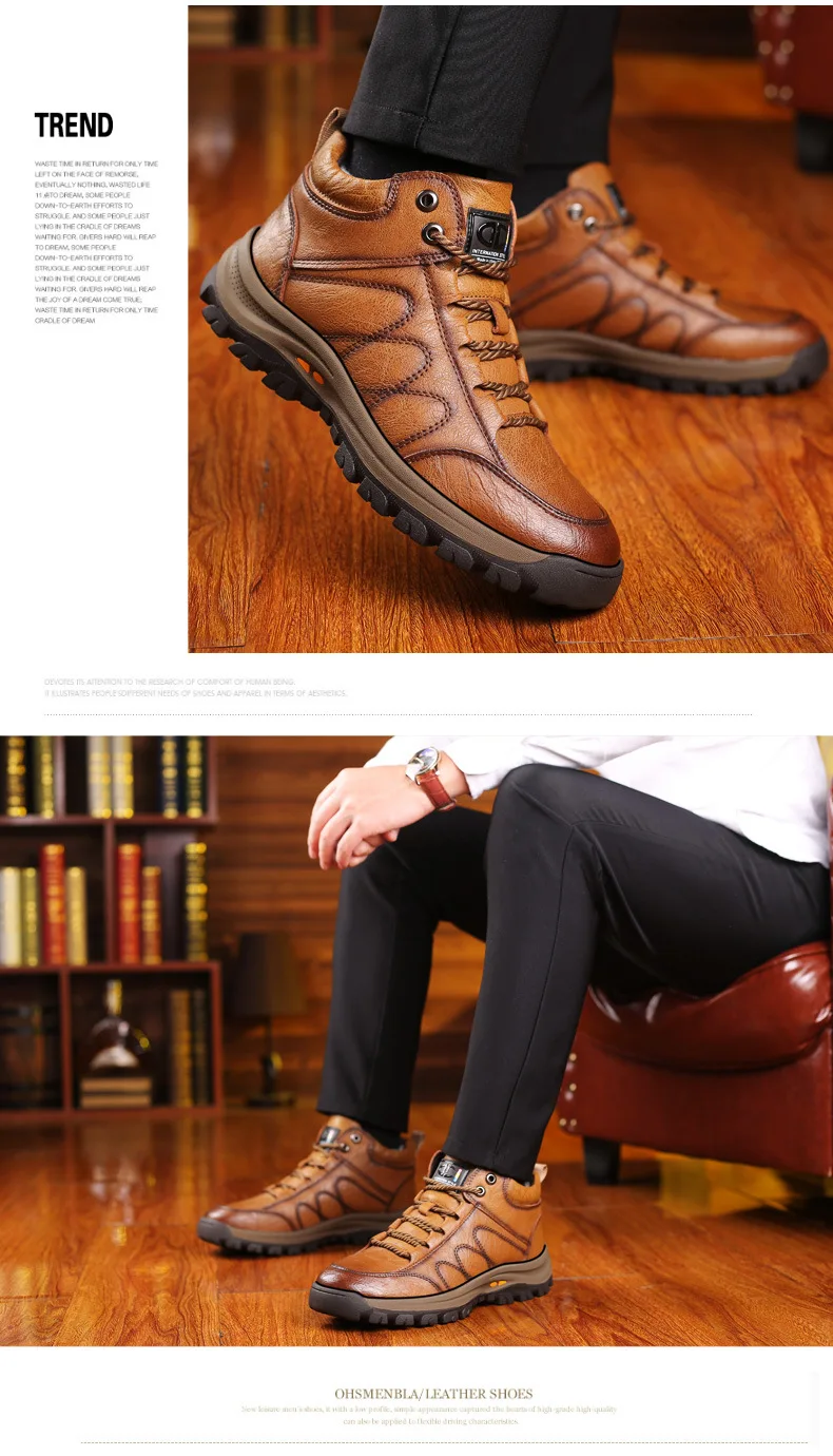 Зимние теплые мужские ботинки из натуральной кожи на меху; Уличные зимние ботинки ручной работы; Водонепроницаемые рабочие Нескользящие ботильоны