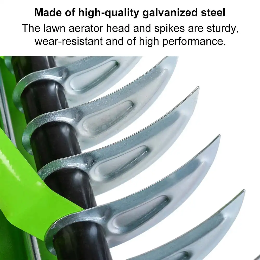 Изготовлены из высококачественной оцинкованной стали, головки аэратора для газона и шипы отличаются долговечностью, износостойкостью и высокой производительностью.