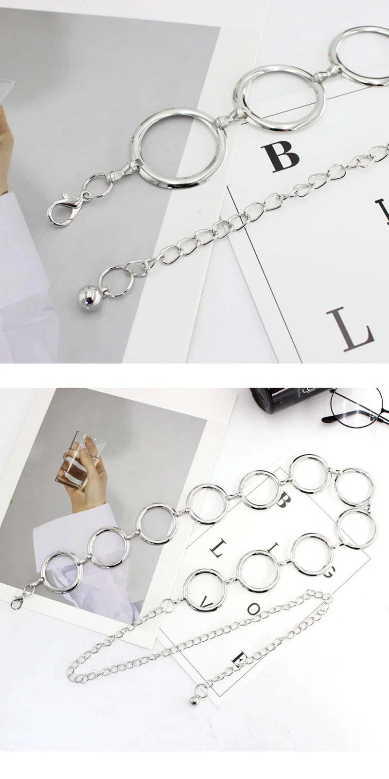 Модный Круглый пояс с металлической цепочкой для женщин, золотой, серебряный круглый ремень из сплава с длинной кисточкой, женский пояс для платья