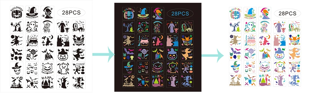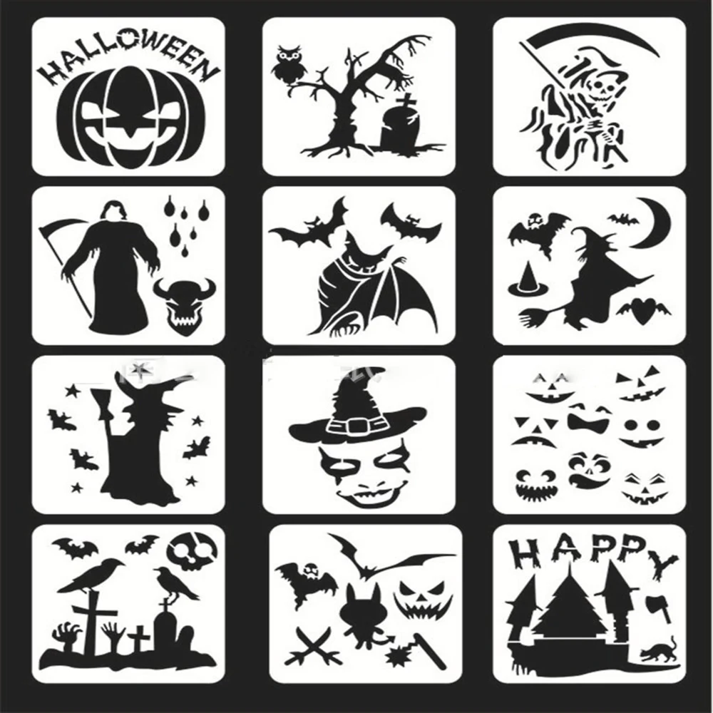 Хэллоуин шаблоны для рисования для детей и взрослых "сделай сам" для боди-арта Шаблон Уход за кожей лица трафареты для картин 12/28 шт. 13*13 см 9 шт. кисти