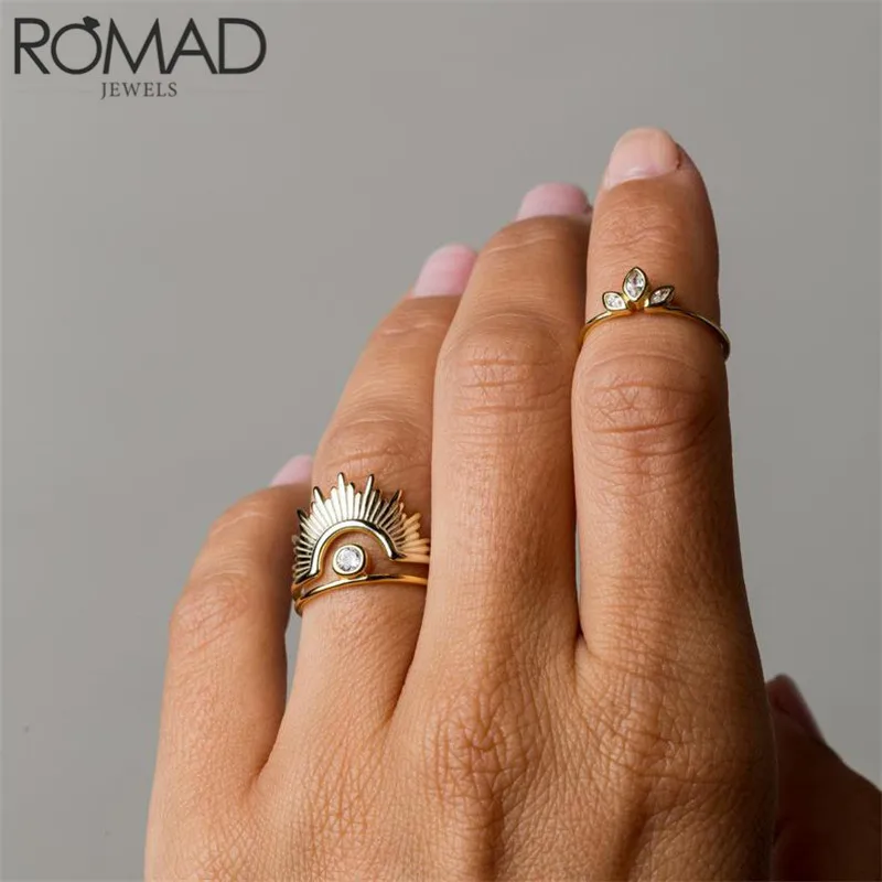 ROMAD винтажные изящные белые хрустальные короны кольца для женщин подарок простое обручальное кольцо конский глаз 925 Серебряные кольца, ювелирные изделия